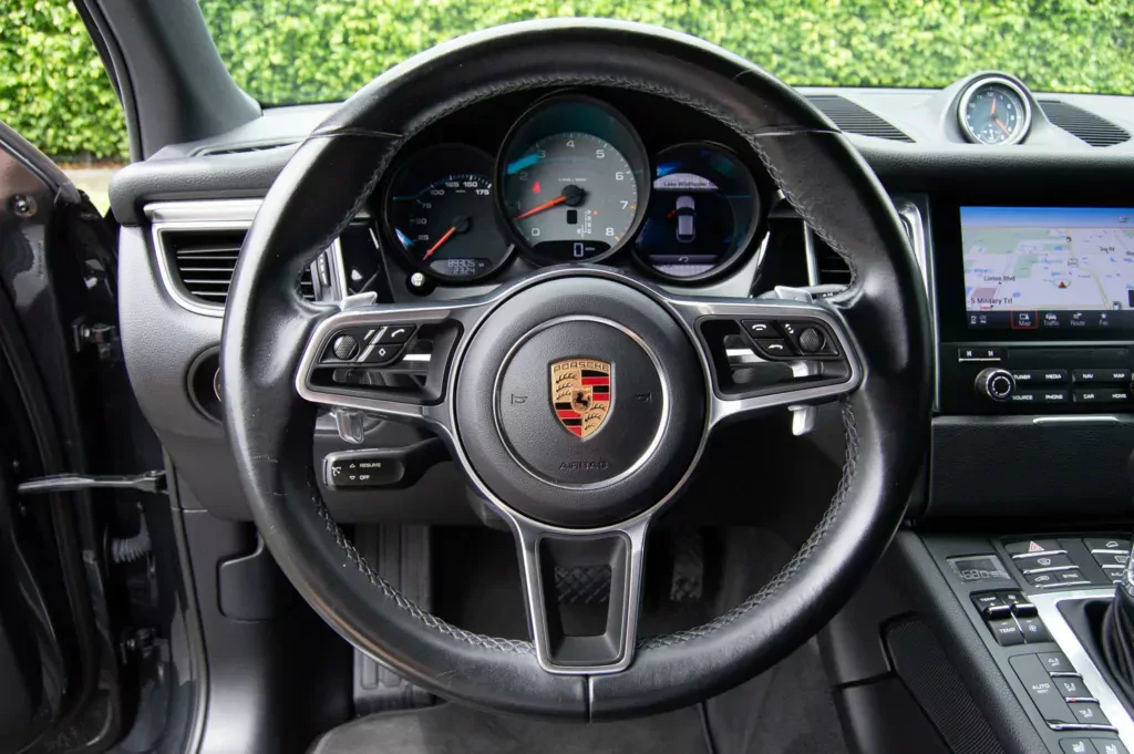 Porsche Macan z 2018 roku może pochwalić się nie tylko świetnym silnikiem pod maską. Ten egzemplarz ma także doskonałe wyposażenie fabryczne – w tym pakiet Premium Plus, 20-calowe felgi RS Spyder Design, czy też asystenta zmiany pasa ruchu.