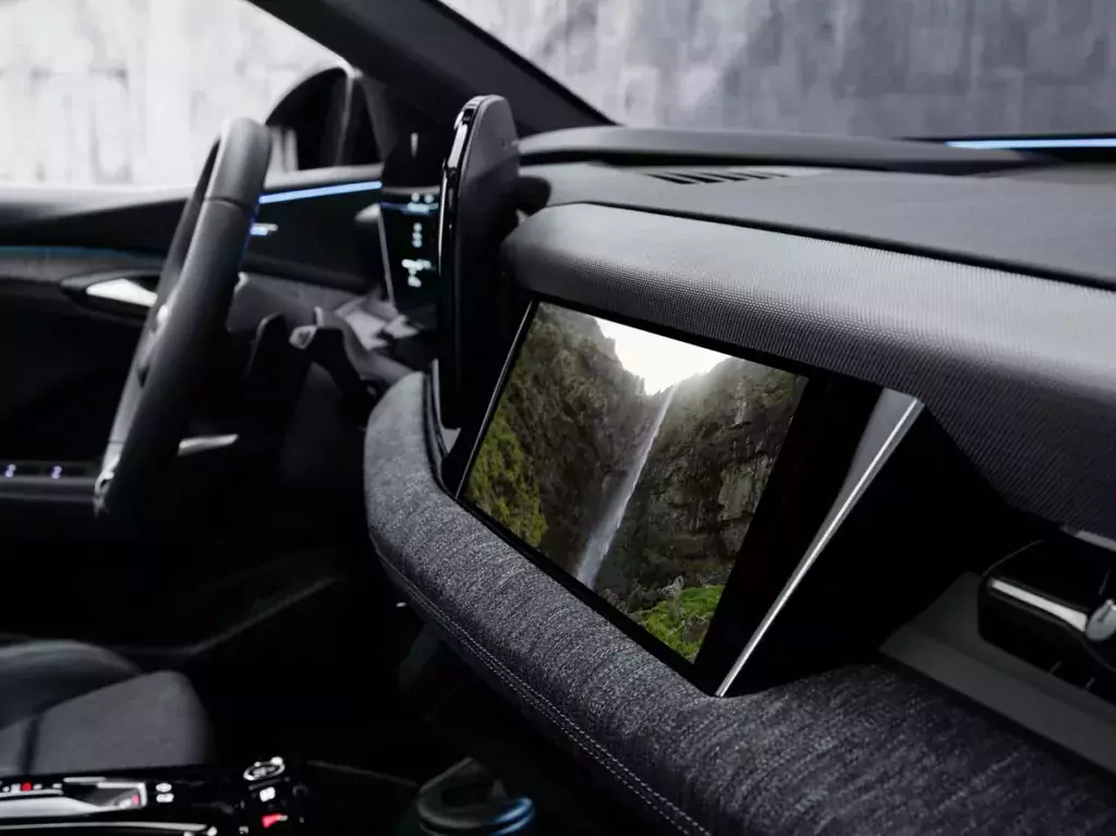 Elektryczne Q6 e-tron opracowano w nowej architekturze elektroniki E 3. We wnętrzu jak już można zobaczyć poniżej, pojawi się technologia MMI nowej generacji, do której dostęp uzyskamy z pomocą ogromnego 14,5-calowego ekranu dotykowego. Warto wiedzieć, iż w Audi Q6 e-tron producent po raz pierwszy wprowadził 10,9-calowy wyświetlacz pasażera oraz wirtualny kokpit nowej generacji.