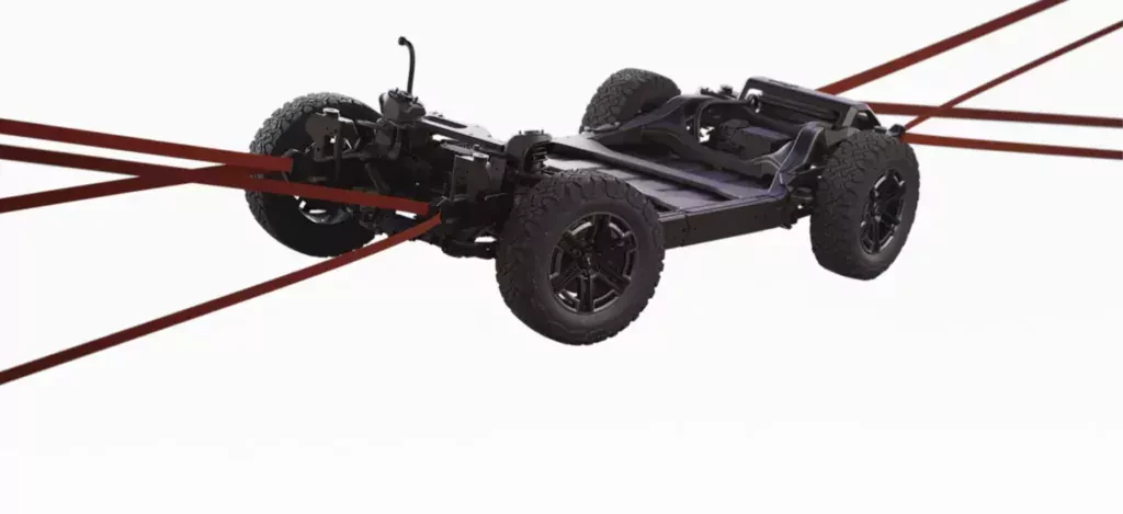Pierwszy amerykański produkt Audi, może po raz pierwszy oprzeć się o ramę drabinową, która nie ma konstrukcji nośnej i posiada napęd na cztery koła z mechaniczną blokadą mechanizmu różnicowego. To bowiem jest podwozie charakterystyczne dla nowych modeli Scout.