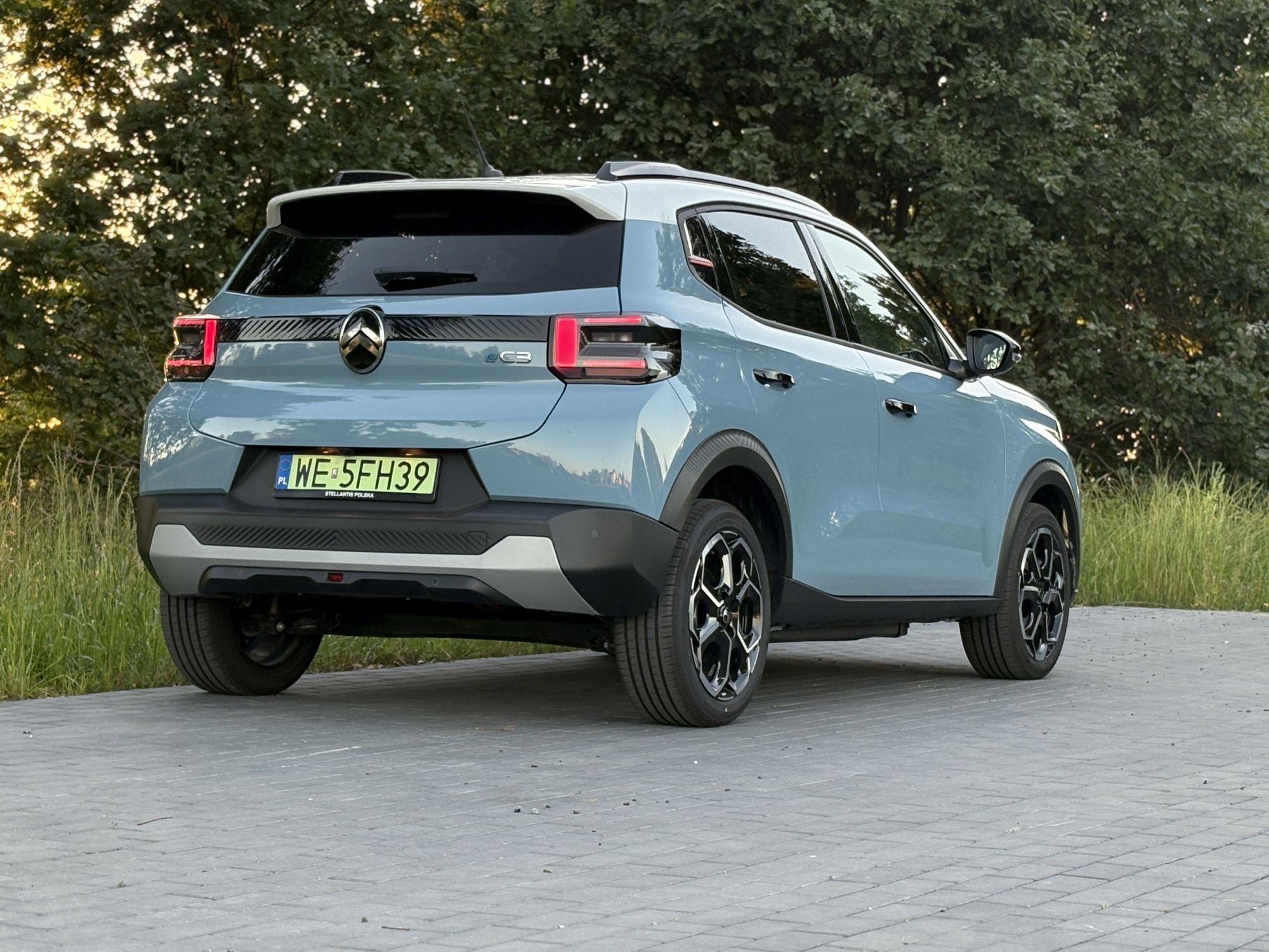 Nowy Citroën ë-C3 to bardzo udana propozycja na zatłoczonym rynku miejskich aut. Wyróżnia się odważną stylistyką, ponadprzeciętnym komfortem i przestronnością (jak na swój segment). Jego największym atutem jest jednak cena. Wersja Max, którą testowałem, z opcjami kosztuje 128 850 zł. Po uwzględnieniu maksymalnej dotacji z programu „NaszEauto” cena spada do poziomu bogato wyposażonej wersji spalinowej.