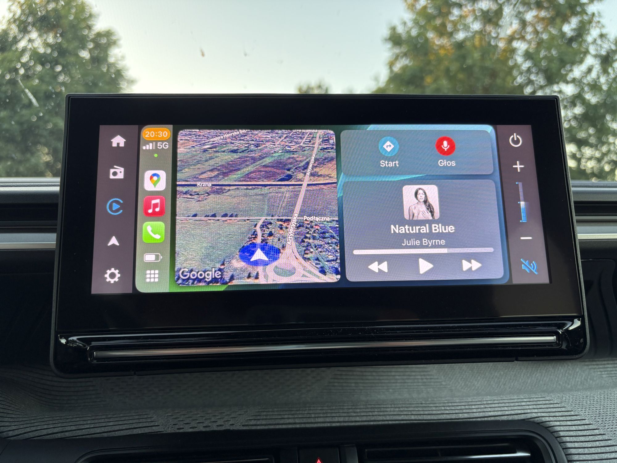 Centralne miejsce zajmuje 10,25-calowy ekran dotykowy systemu My Citroën Drive. Interfejs jest prosty, czytelny i obsługuje bezprzewodowo Apple CarPlay oraz Android Auto. Co najważniejsze, projektanci nie popadli w skrajność – najważniejsze funkcje, takie jak klimatyzacja, wciąż obsługujemy dzięki wygodnych, fizycznych przycisków.