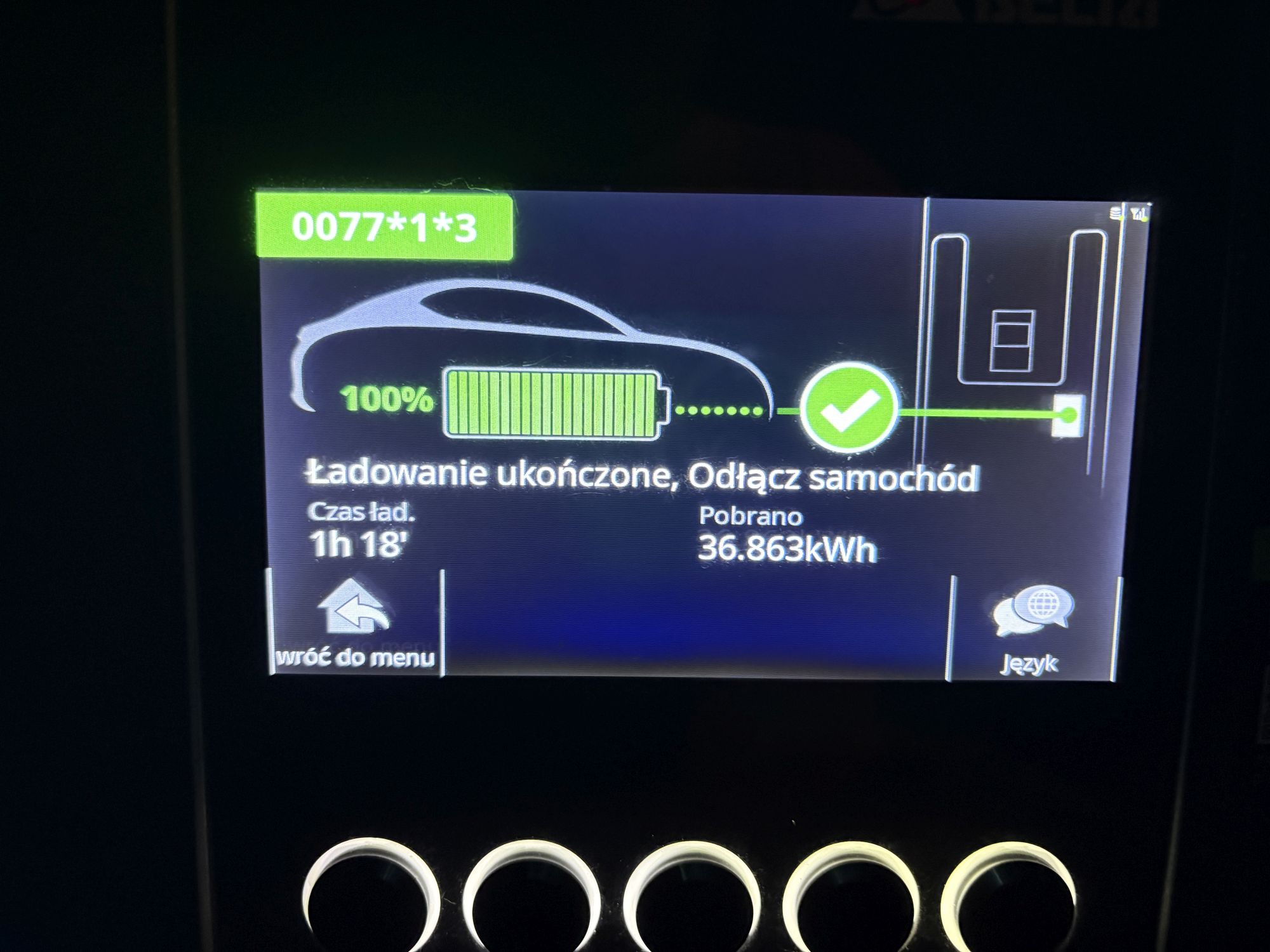 Osoby faktycznie zainteresowane samochodem elektrycznym i tak w większości planują ładowanie takiego pojazdu w domu. Tutaj zwracam uwagę, iż warto doinwestować w pokład0wą trójfazową ładowarkę AC o mocy 11 kW, wówczas dysponując tzw. siłą (lub trójfazowym wallboksem) w garażu, auto naładujemy w ok. 5-6 godzin. Taka opcjonalna ładowarka wbudowana w pojazd kosztuje 1500 zł.