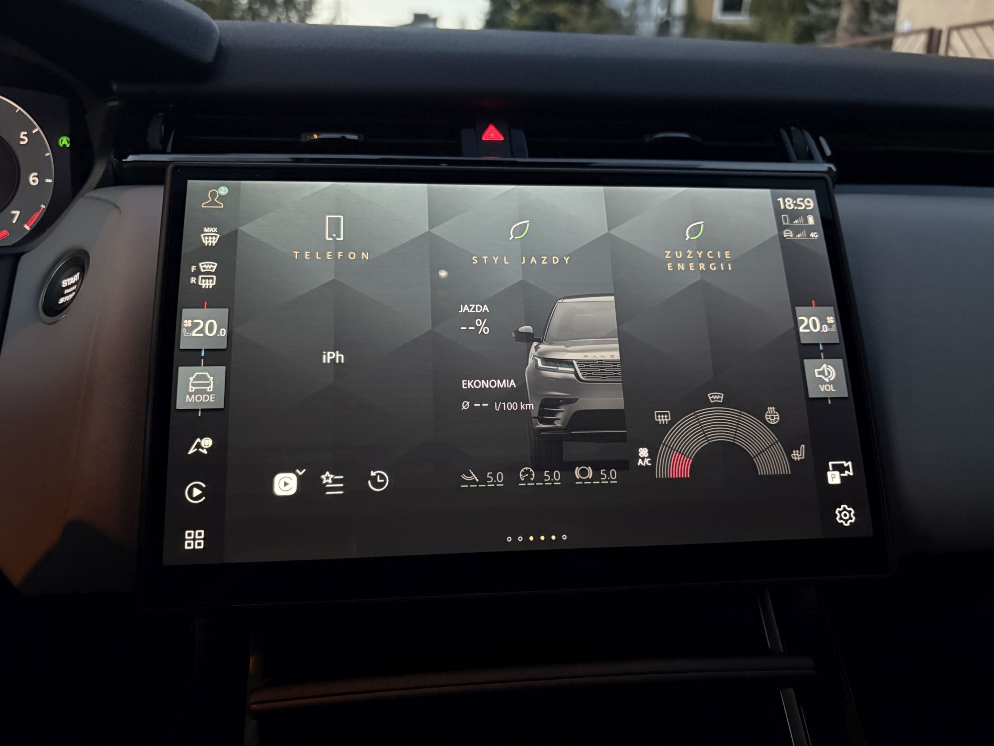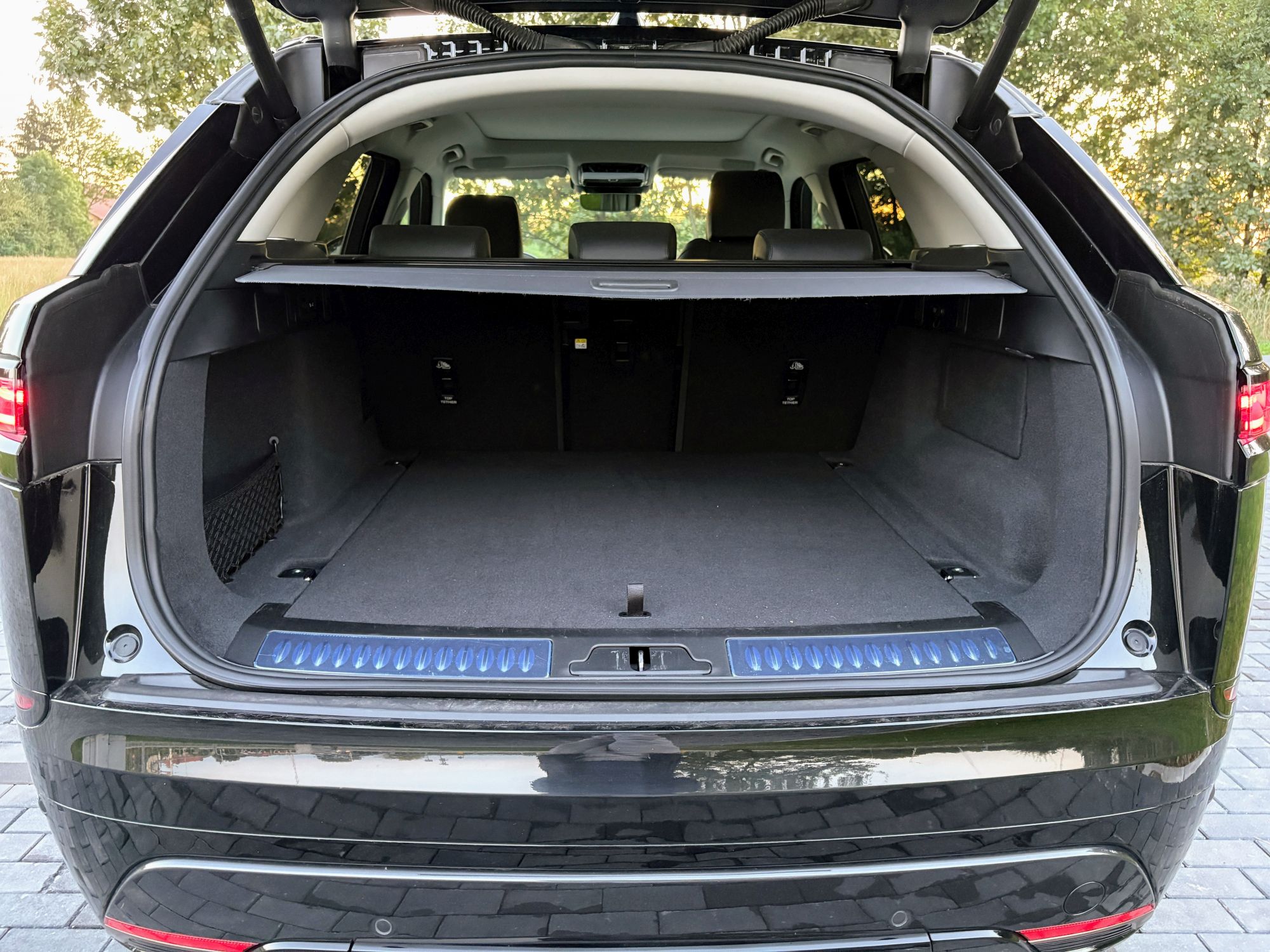 Na mojej trasie testowej – pół na pół drogi ekspresowe i krajowe z przejazdami przez miasteczka – Velar P400 zużył średnio 9,3 l/100 km. jeżeli jedziesz spokojnie podmiejskimi drogami, da się zobaczyć „siódemkę” z przodu. Biorąc pod uwagę moc, masę i stały napęd na cztery koła, to niezły wynik. A dzięki ponad 80-litrowemu zbiornikowi, zasięg w trasie jest naprawdę solidny.