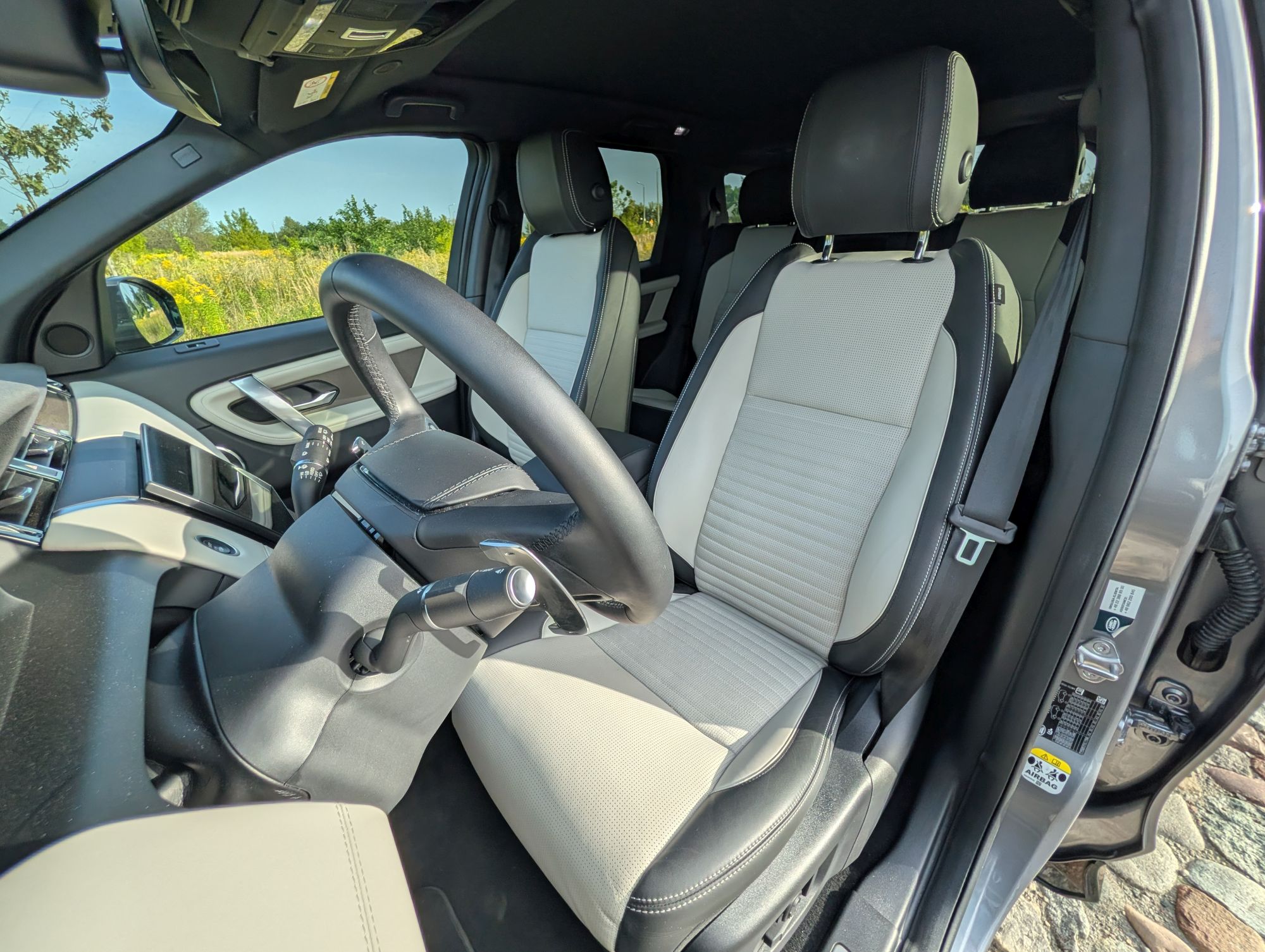 Jakość wykonania? Bardzo wysoka. W wersji Dynamic HSE mamy świetne materiały, miękkie tworzywa i detale takie jak wykończenie Titanium Mesh czy metalowe nakładki na pedały. To pełnoprawne premium, w którym czujesz się dopieszczony. Fotele z 14-kierunkową regulacją są nie tylko podgrzewane, ale i wentylowane (opcja 033GP), co w skórzanej tapicerce latem jest zbawieniem.