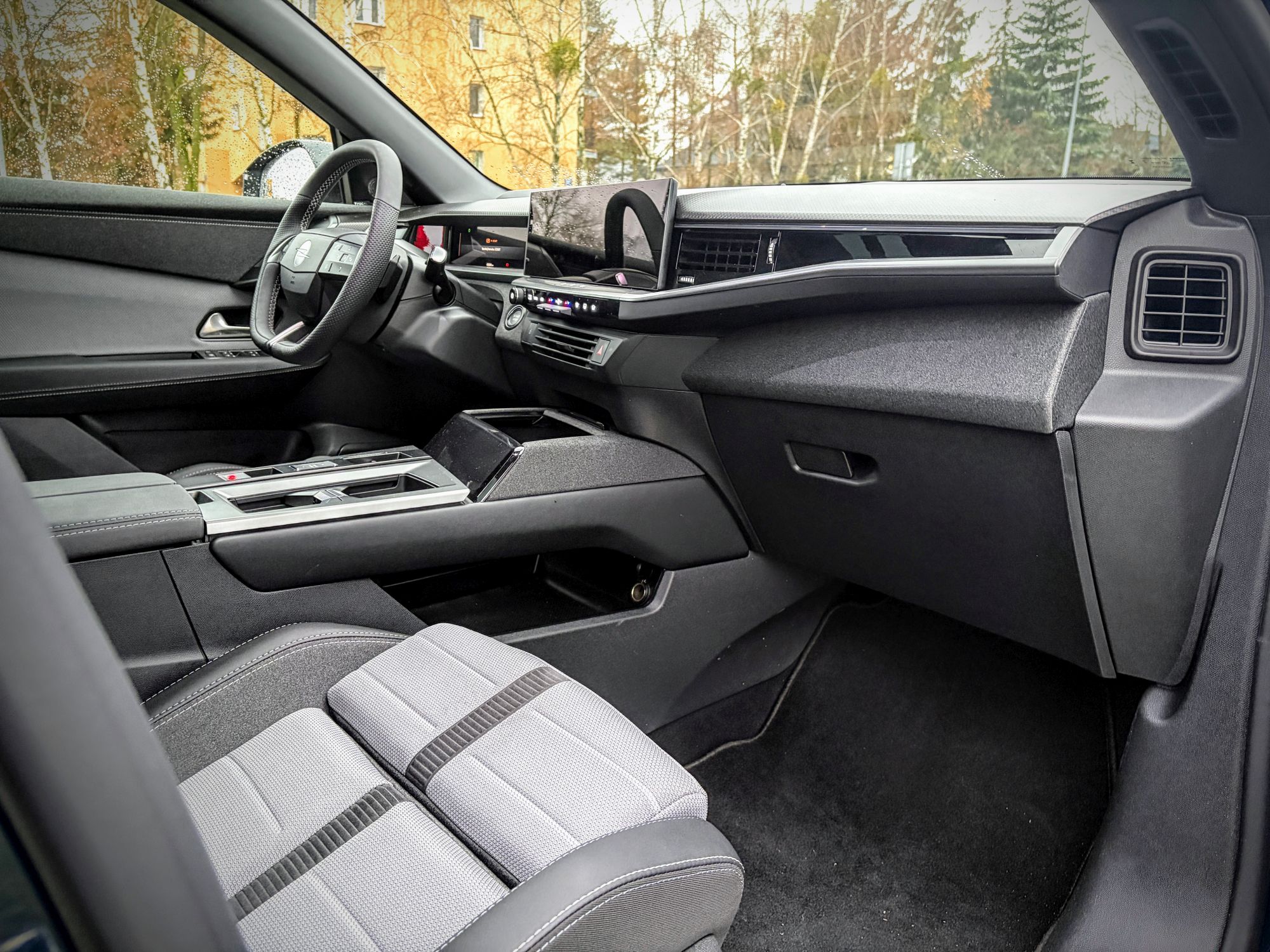 Przed oczami kierowcy i w centrum deski rozdzielczej znajdują się dwa oddzielne ekrany. Dla wielu (w tym dla mnie) to zaleta – czytelność jest wzorowa. Co najważniejsze, w nowym modelu zachowano zdrowy rozsądek: mamy fizyczny panel klimatyzacji z przyciskami i pokrętłami. W testowanym egzemplarzu był też całkiem przyjemnie grający system audio sygnowany marką Focal.