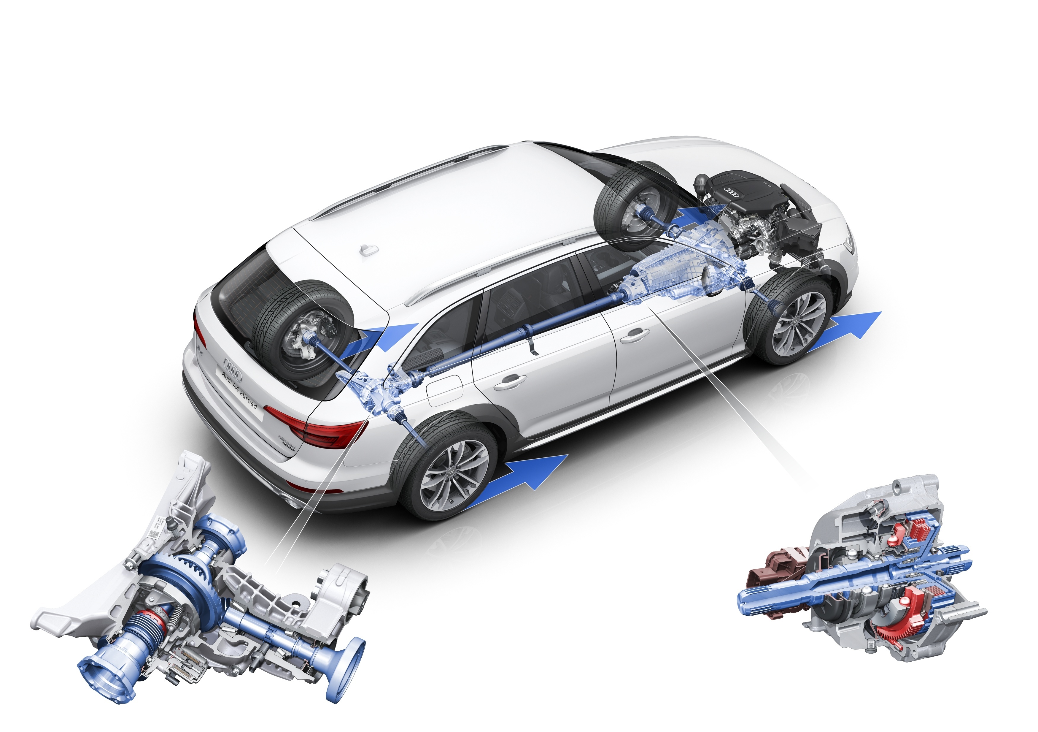Przy dyferencjale tylnej osi w napędzie quattro Ultra znajduje się sprzęgło kłowe, które całkowicie odłącza tylną część napędu, tj. wyłącza z pracy wał napędowy łączący przednią i tylną oś. W bardziej rozwiniętym wariancie, stosowanym w modelu S5, przy tylnym dyferencjale znajdują się dodatkowe sprzęgła blokujące koła tylnej osi, co pozwala sterować rozdziałem siły napędowej pomiędzy kołem prawym i lewym.
