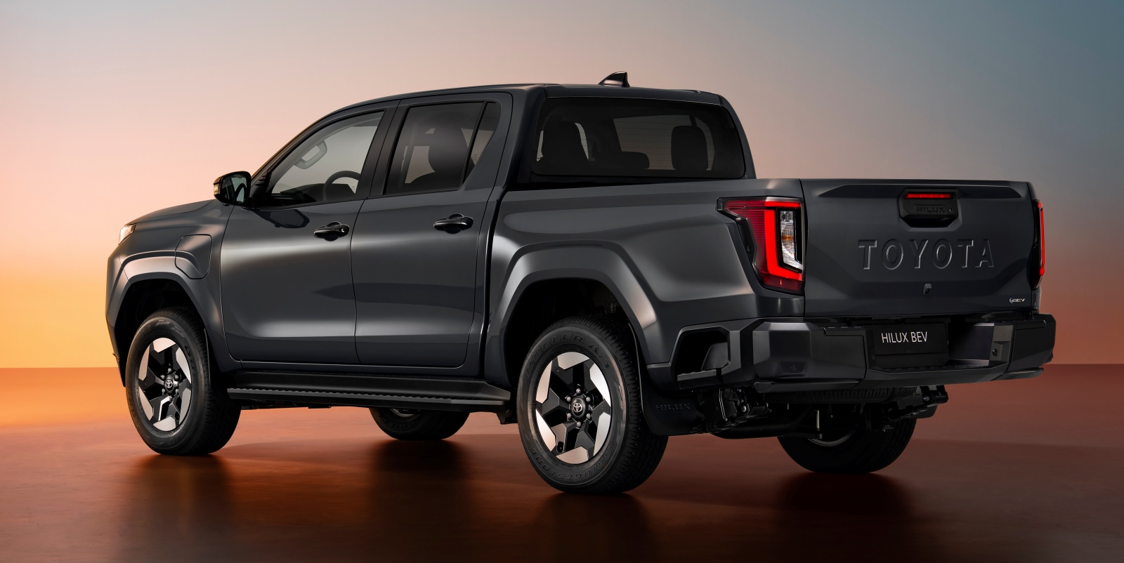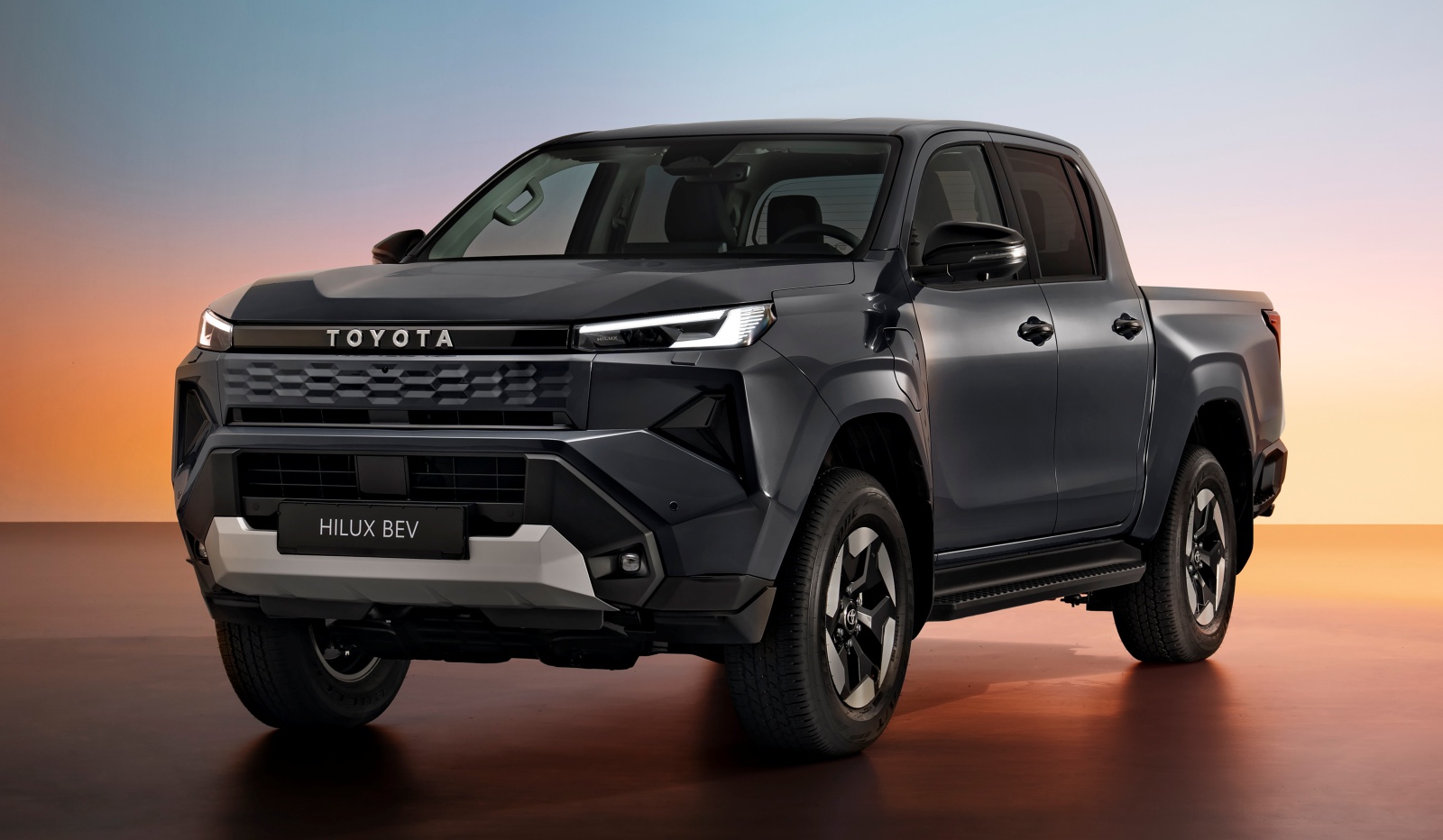 Hilux mocno zmienił się pod względem stylizacji. Na zdjęciach wersja BEV, spalinowe mają klasyczny, otwarty grill.