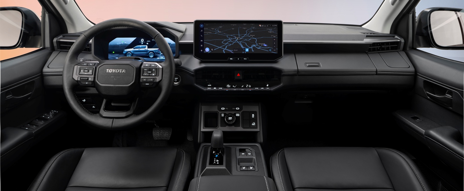 Całkiem nowa kabina, nawiązująca stylizacją do tej w Land Cruiserze. Wskaźniki i centralny ekran mają po 12,3 cala.