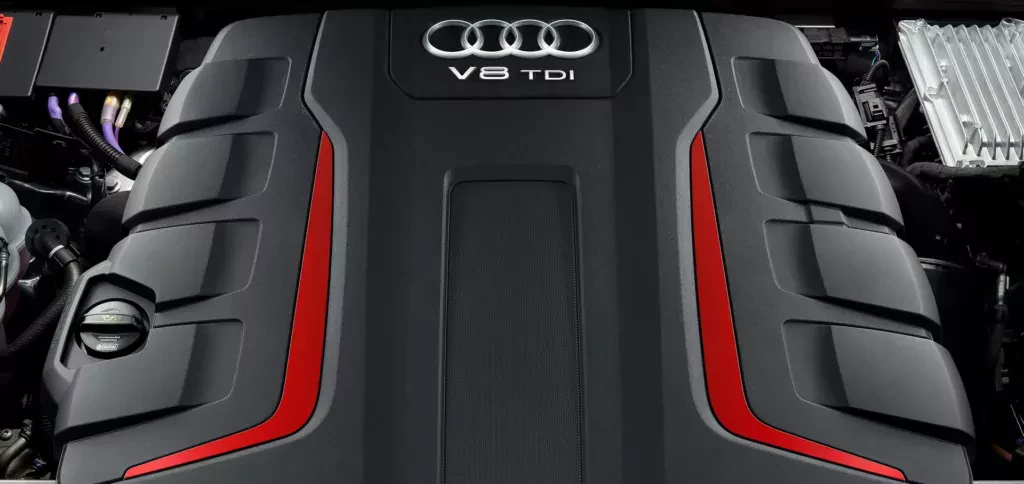 4-litrowy silnik Diesla V8 TDI Bi-turbo o mocy 435 KM. // graf. materiały prasoweNic dziwnego, iż Grupa VW przez cały czas nie skreśla wysokoprężnych motorów TDI z oferty wielu modeli. To wciąż najważniejszy zarobek, zwłaszcza w takich modelach jak niezwykle popularny ostatnio VW Tiguan, gdzie 1/3 egzemplarzy była wybierana w dieslu.
