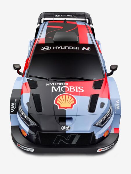 O ile paleta kolorystyczna zmieniła się nieznacznie – wciąż składa się z niebieskiego i czerwonego, a jedynie kolor granatowy ustąpił miejsca czerni – została ułożona zupełnie inaczej. Zamiast podkreślać linie nadwozia, Hyundai postawił na niesymetryczny projekt pełen ostrych krawędzi, które w pewnym stopniu maskują kształt samochodu.