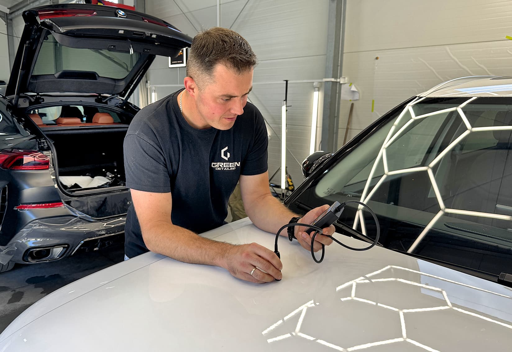 Po przeglądzie w warsztacie udaliśmy się do zaprzyjaźnionego studia detailingowego. Tam jego właściciel – posiadający 20-letnie doświadczenie Adrian Zielonka – ocenił Jaecoo 7 z zewnątrz i w środku.