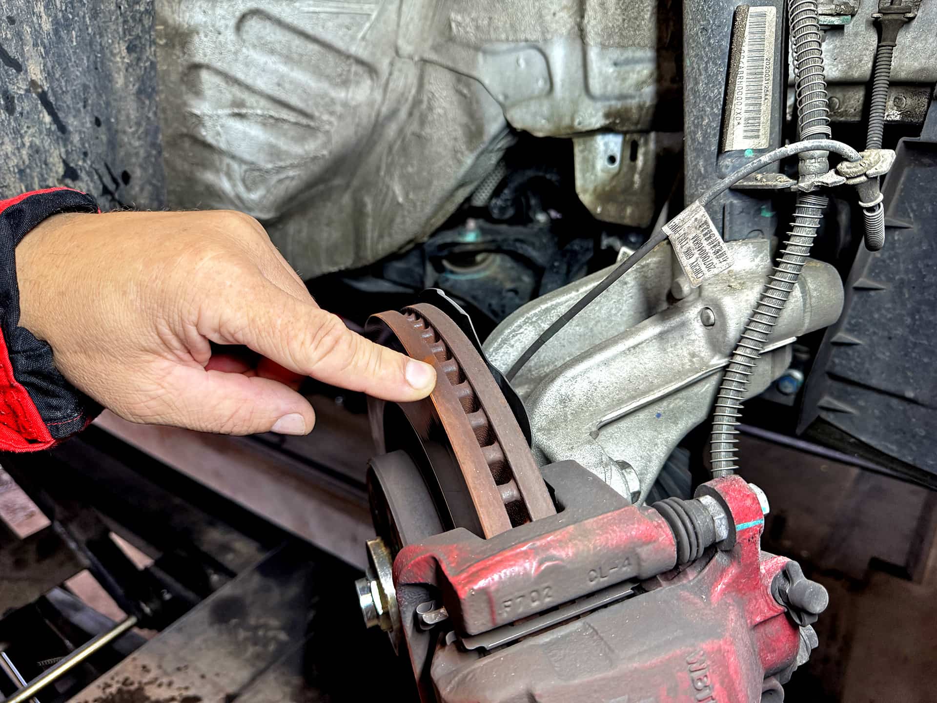 Układ hamulcowy samochodu Jaecoo 7 zrobił na mechaniku dobre wrażenie. Szczególnie duże dwutłoczkowe zaciski współpracujące z masywnymi tarczami hamulcowymi o ponadprzeciętnej grubości.
