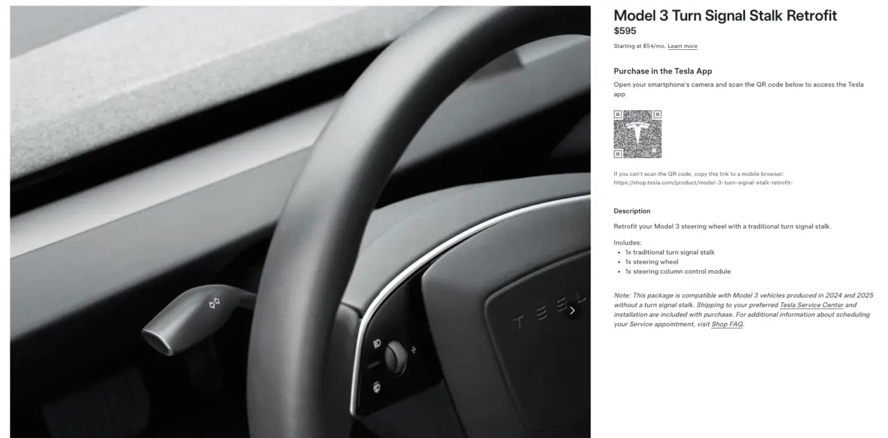 Warto jednak zaznaczyć, iż proponowany zestaw (Model 3 Turn Signal Stalk Retrofit) nie obejmuje wyłącznie dźwigni kierunkowskazów. Mowa również o kierownicy z miejscem na fizyczną manetkę, a także moduł kolumny kierownicy i usługę serwisową. Tak wysoki koszt staje się zatem nieco bardziej uzasadniony, choć wciąż sam fakt istnienia takiej opcji jest dość absurdalny.