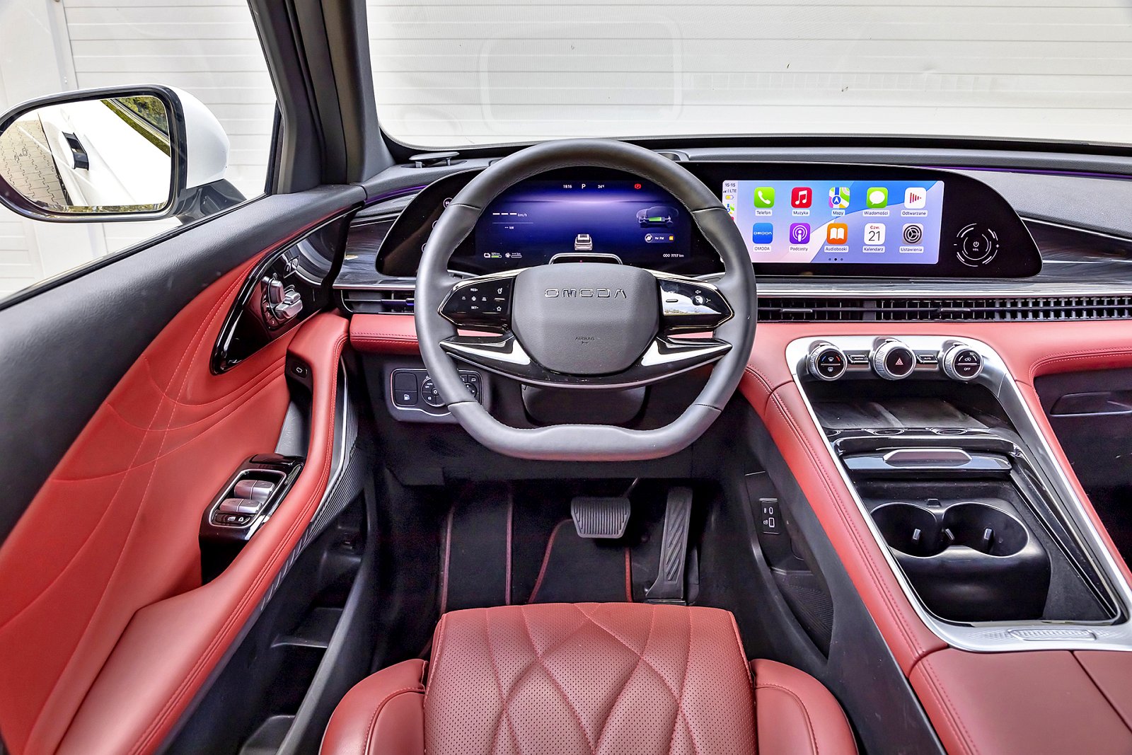 Kabina Omody prezentuje się równie estetycznie jak nadwozie i jest dobrze zmontowana, a przyciski na kierownicy oraz pokrętła na konsoli środkowej ułatwiają obsługę zasadniczych funkcji, podobnie jak menu skrótów wysuwane, niczym w telefonie, ruchem palca od góry ekranu. Niestety ten ostatni umieszczono zbyt daleko, jego reakcja na dotyk jest zbyt opieszała, a sterowania nie ułatwiają niewielkie ikony. Kolejny minus: sporo powierzchni wykończonych błyszczącą czernią, która gwałtownie pokrywa się odciskami palców i widać na niej kurz.