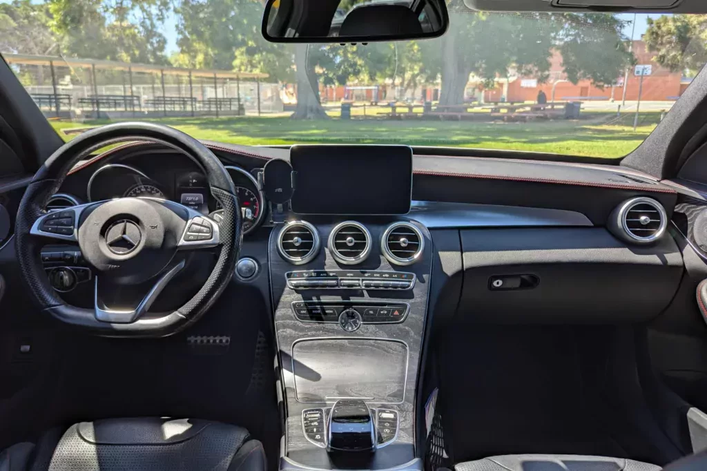 fot. Cars & BidsNajlepszym tego przykładem może być ten konkretny Mercedes C450 AMG. Samochód ma pod maską podwójnie doładowany, 3-litrowy silnik V6 o mocy 362 koni mechanicznych i napęd na wszystkie cztery koła. Już brzmi dobrze, prawda? Ale im dalej, tym lepiej. Choć oczywiście największą zaletą tego samochodu jest jego silnik, poprzedni właściciel nie szczędził także na wyposażeniu dodatkowym.