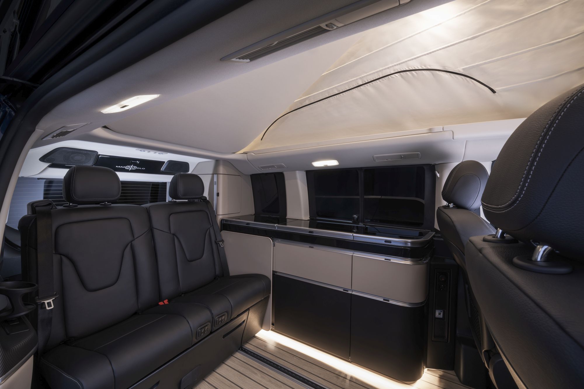 Wszystkim sterujemy przez system MBAC (Mercedes-Benz Advanced Control). Z poziomu ekranu dotykowego lub aplikacji w telefonie obsłużymy światła, dach, lodówkę (która jest teraz bardziej energooszczędna) czy sprawdzimy poziom wody.