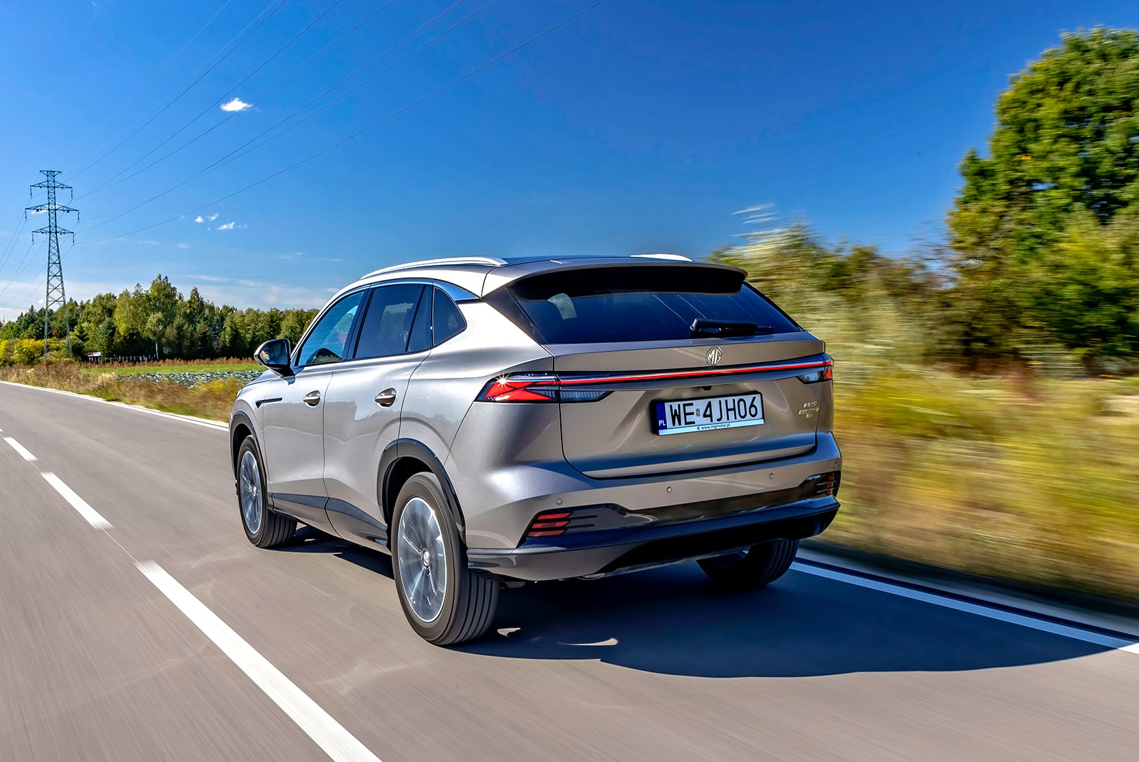 Na drodze MG pozytywnie zaskakuje dojrzałością układu jezdnego i w zasadzie nie odstaje od poziomu, który oferują europejscy czy koreańscy rywale. Zawieszenie pracuje harmonijnie i dobrze radzi sobie z tłumieniem nierówności. Prowadzenie nie jest zbyt angażujące, ale powiedzmy sobie szczerze – w hybrydowym SUV-ie po prostu nie musi. Istotniejsze, iż auto jedzie pewnie i pozostaje neutralne w zakrętach.