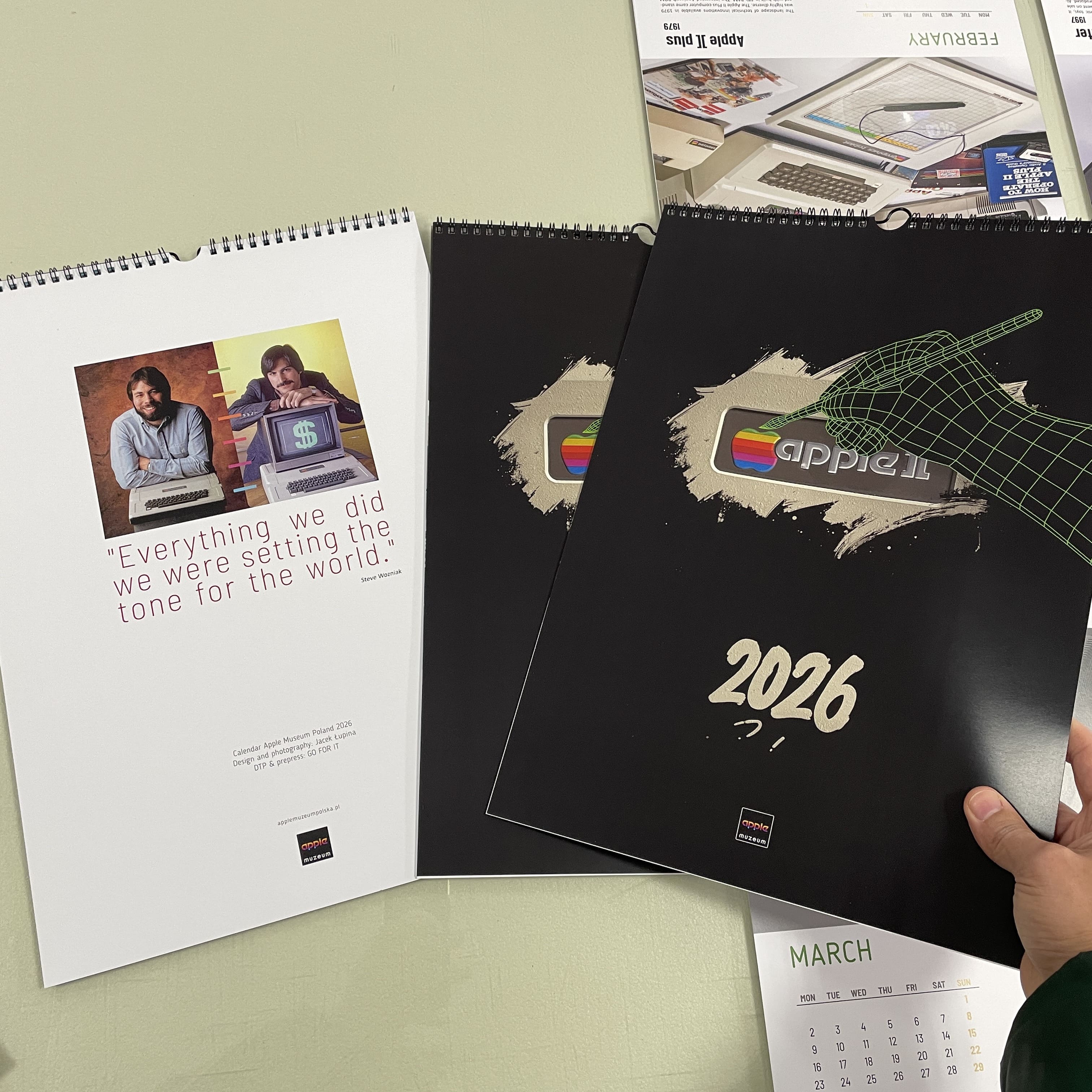 Idealny prezent dla fanów Apple, designu i historii technologii. Każdy miesiąc kalendarza to autorskie zdjęcie eksponatu z największej prywatnej kolekcji Apple na świecie oraz ciekawostki, w tym o jedynym polskim klonie Apple II z 1984 roku. Format A3, wysoka jakość druku, wersja PL lub EN. Każdy zakup wspiera muzeum, a z kodem „iMagazine” otrzymasz 20% zniżki.
