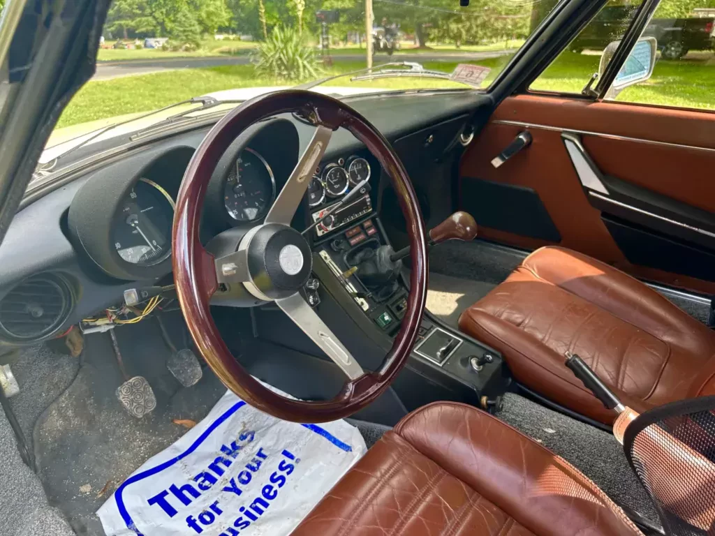 Jednostka ma podwójny wałek rozrządu i jest połączona z pięciobiegową manualną skrzynią biegów i mechanizmem różnicowym o ograniczonym poślizgu. Wśród dodatkowego wyposażenia znajdziemy czarny, składany dach, tylny spojler, czy wspomagane hamulce tarczowe. Do tego mamy też 14-calowe felgi aluminiowe, kierownicę Nardi Personal, czy system audio Sony i elektrycznie sterowane szyby. Musicie przyznać, iż jak na samochód sprzed prawie 50 lat, to całkiem nieźle.