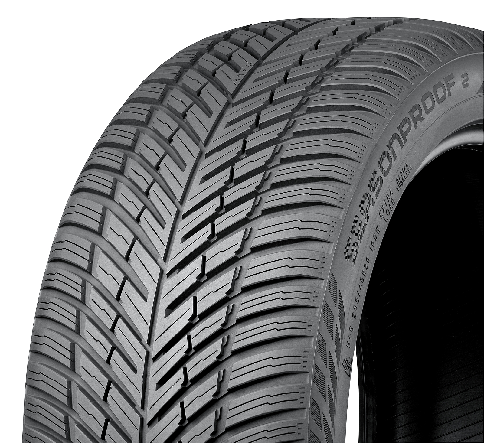 Ogumienie Nokian Seasonproof 2 korzysta z Season Sense 2.0 – zaawansowanej technologii, która łączy najnowsze innowacje w zakresie designu bieżnika i mieszanki gumowej. Jego nowoczesny, kierunkowy trzystrefowy wzór bieżnika Triple Zone gwarantuje bezpieczeństwo, sterowność, stabilność oraz przyczepność na mokrej jezdni i w warunkach zimowych. Mieszanka gumowa Season Smart zwiększa bezpieczeństwo i przyczynia się do zrównoważonego rozwoju. Zoptymalizowano ją pod kątem całorocznej eksploatacji, łącząc dwie odnawialne żywice z – również odnawialną – krzemionką.
