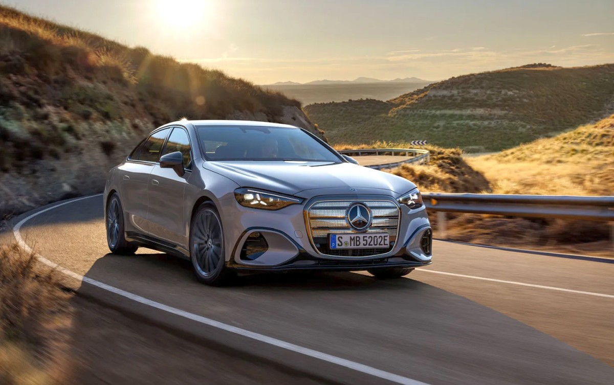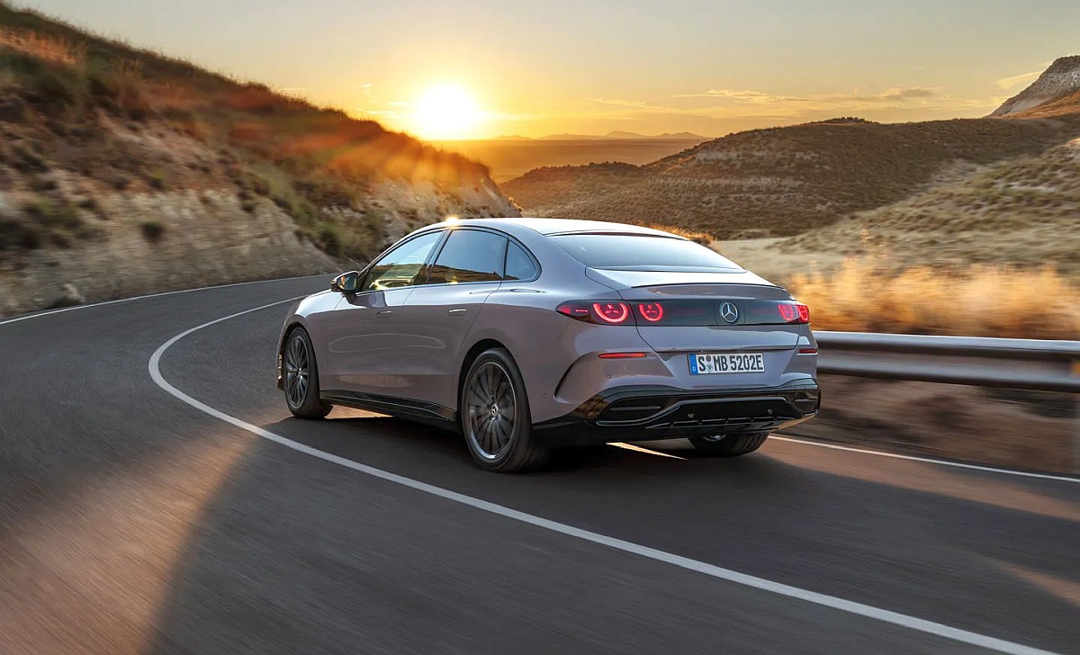 Przód elektrycznej limuzyny klasy średniej wyróżnia się przede wszystkim pokaźną osłoną chłodnicy z 1050 świecącymi elementami, a także podświetlanym logo. Reflektory dostały świetlny podpis w kształcie trójramiennej gwiazdy.