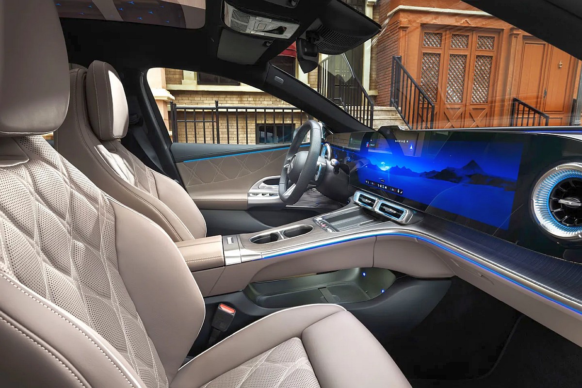 We wnętrzu Mercedes chwali się ekranem rozciągniętym przez całą deskę rozdzielczą. Producent podaje, iż ma on przekątną 39,1 cala, mierzy niemal 1 m szerokości, a jasność jego poszczególnych części można osobno regulować.