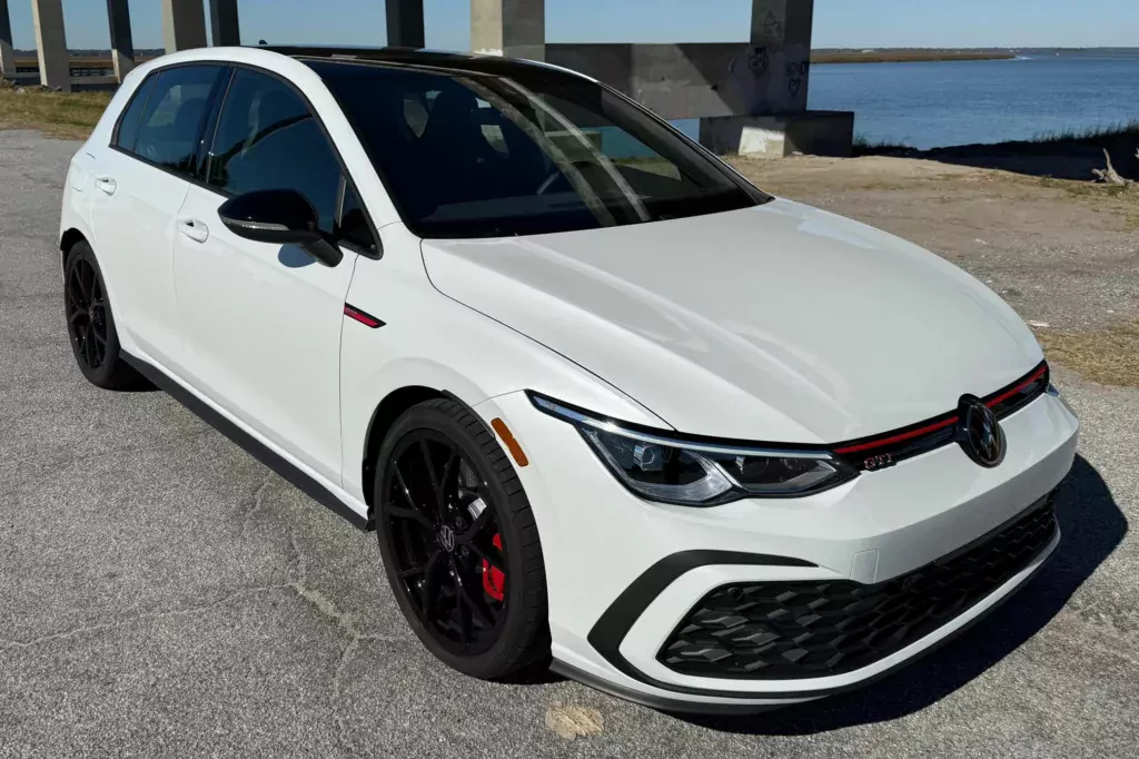 - Egzemplarz VW Golfa GTI z 2024 r. z przebiegiem 6 tys. km za 103 tysiące złotych
