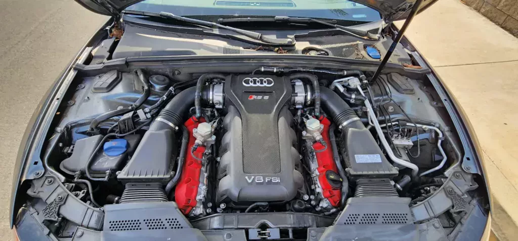 Audi wykończone jest efektownym lakierem Pearl Daytona Grey, w środku znajdziemy czarną skórę. Najciekawsze jest oczywiście pod maską. Znajdziemy tam 4,2-litrowy silnik V8, który wysyła moc 450 koni mechanicznych na wszystkie cztery kola dzięki siedmiobiegowej skrzyni Tiptronic.