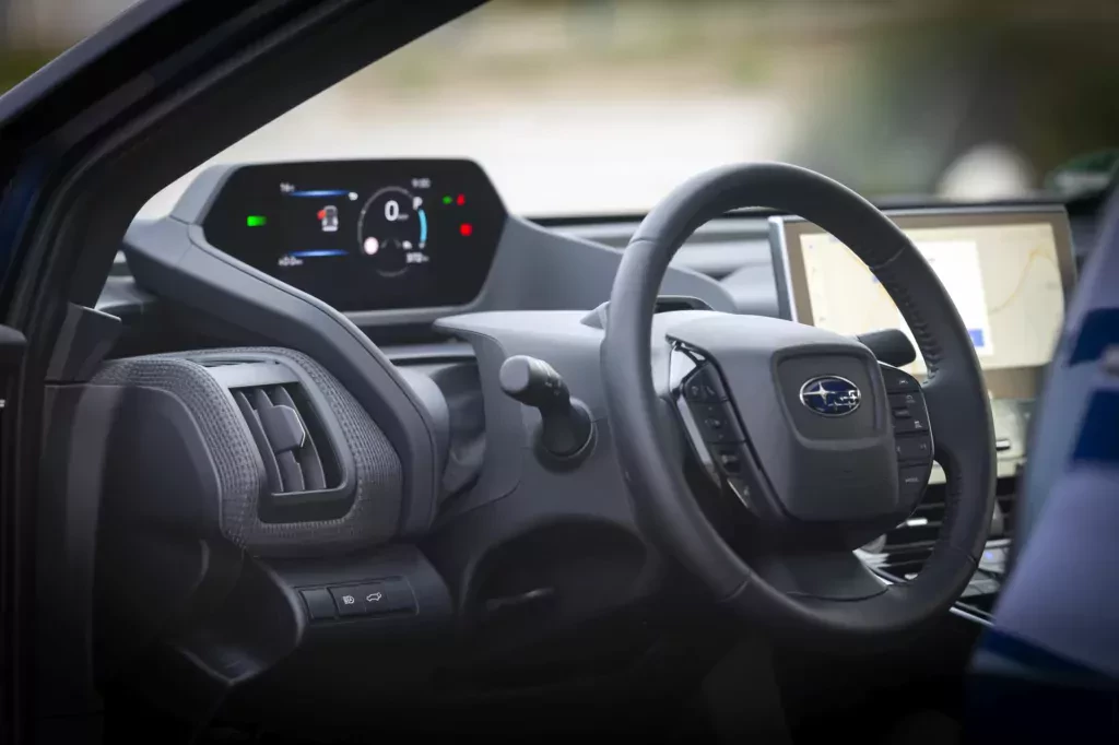 fot. Subaru MediaCo jednak z ceną? Chcąc kupić dziś model Solterra trzeba liczyć się z wydatkiem rzędu 160 tysięcy złotych. Ceny używanej Toyoty bZ4X, czyli bliźniaka modelu Solterra, startują dziś w okolicach 120 tysięcy złotych, więc różnica jest dosyć wyraźna. Oczywiście Toyota jest aktualnie bardziej popularna, zarazem więcej jest modeli używanych i ceny spadają. W przypadku Subaru w okolicach 160 tysięcy kupimy model… nowy, nieużywany, choć z 2023 roku. Należy zadać sobie zatem pytanie na czym nam zależy i która opcja będzie dla was bardziej adekwatna.