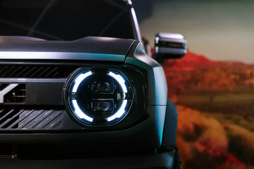 Z przodu znajdziemy okrągłe reflektory LED, osłonę chłodnicy i terenowy zderzak. Pod pewnymi względami przypomina Forda Bronco z nutą solidności Land Cruisera. Koncept otrzymał 17-calowe felgi i ma matowy, szary lakier. Posiada też snorkel i bagażnik z wyciągarką. W przypadku wersji produkcyjnych możemy spodziewać się jednak nieco bardziej stonowanej stylistyki.