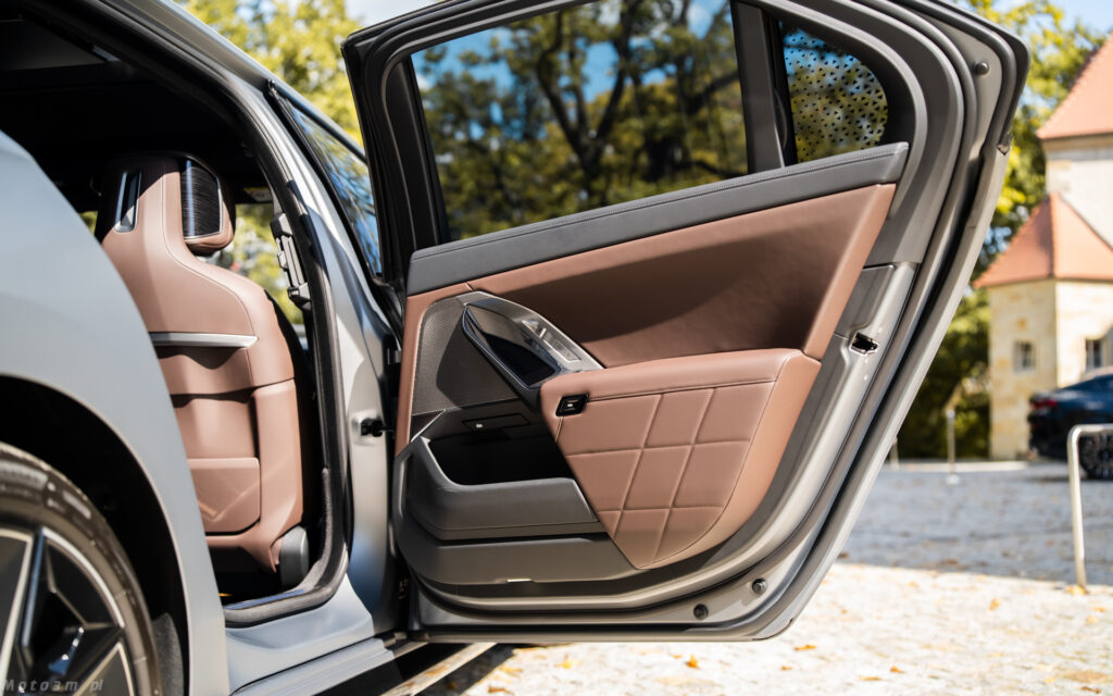 Lakier Frozen Pure Grey z palety BMW Individual, 21 calowe obręcze kół M Aero 909 i do tego brązowe wnętrze ze skórzanym wykończeniem Veganza Macha.