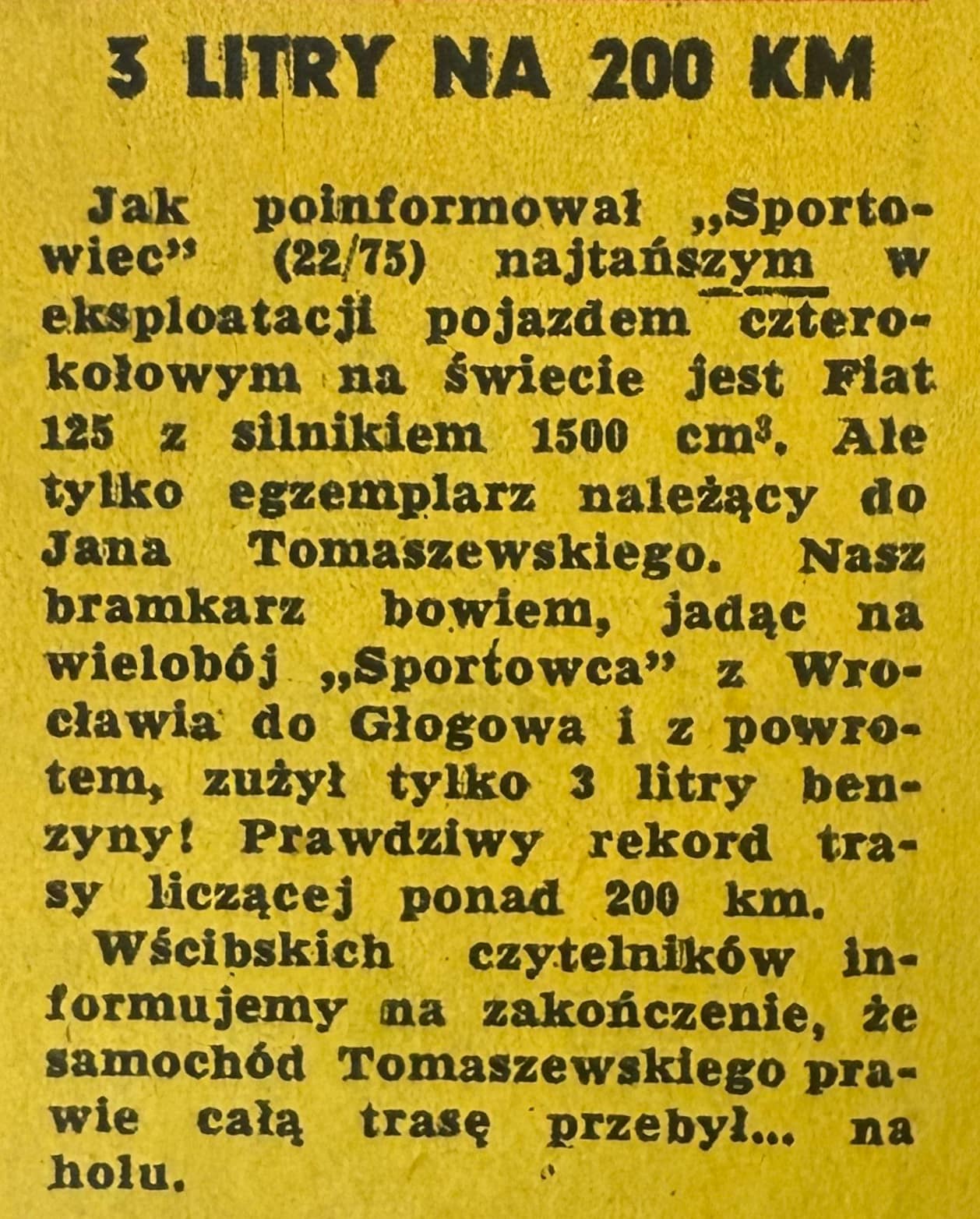 Z przymrużeniem oka: ciekawostka na temat rekordowo niskiego zużycia paliwa Fiata 125, a przy okazji... kronika towarzyska.