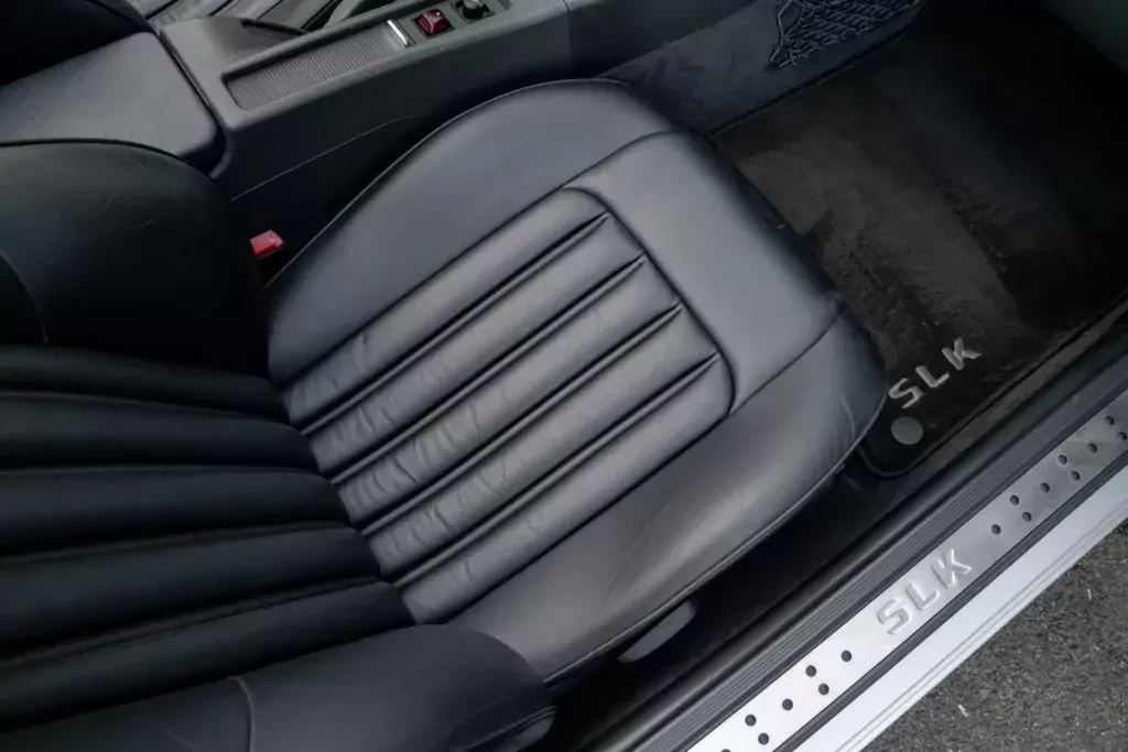 W środku Mercedes-Benz SLK230 przypomina połączenie nowoczesności z przeszłością. Znajdziemy tu już bardzo wygodne, skórzane fotele, czy system audio Bose, ale także zmieniarkę CD, czy radio FM.