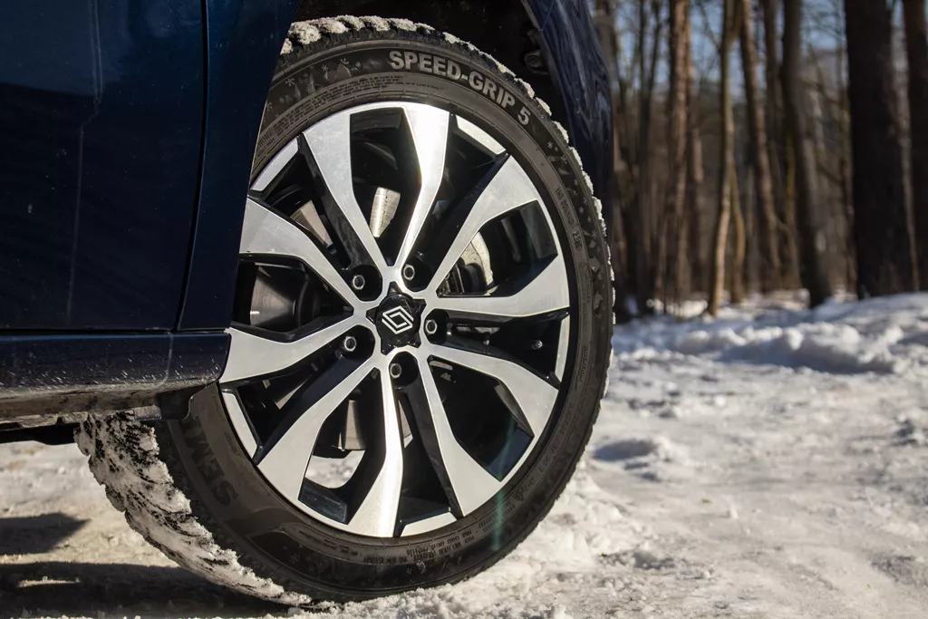 Testowana wersja wyróżnia się kilkoma detalami: 17-calowe obręcze kół dobrze wypełniają nadkola, a granatowy lakier Cavansite (dopłata 2 700 zł) harmonizuje z nadwoziem i chromowanymi detalami.