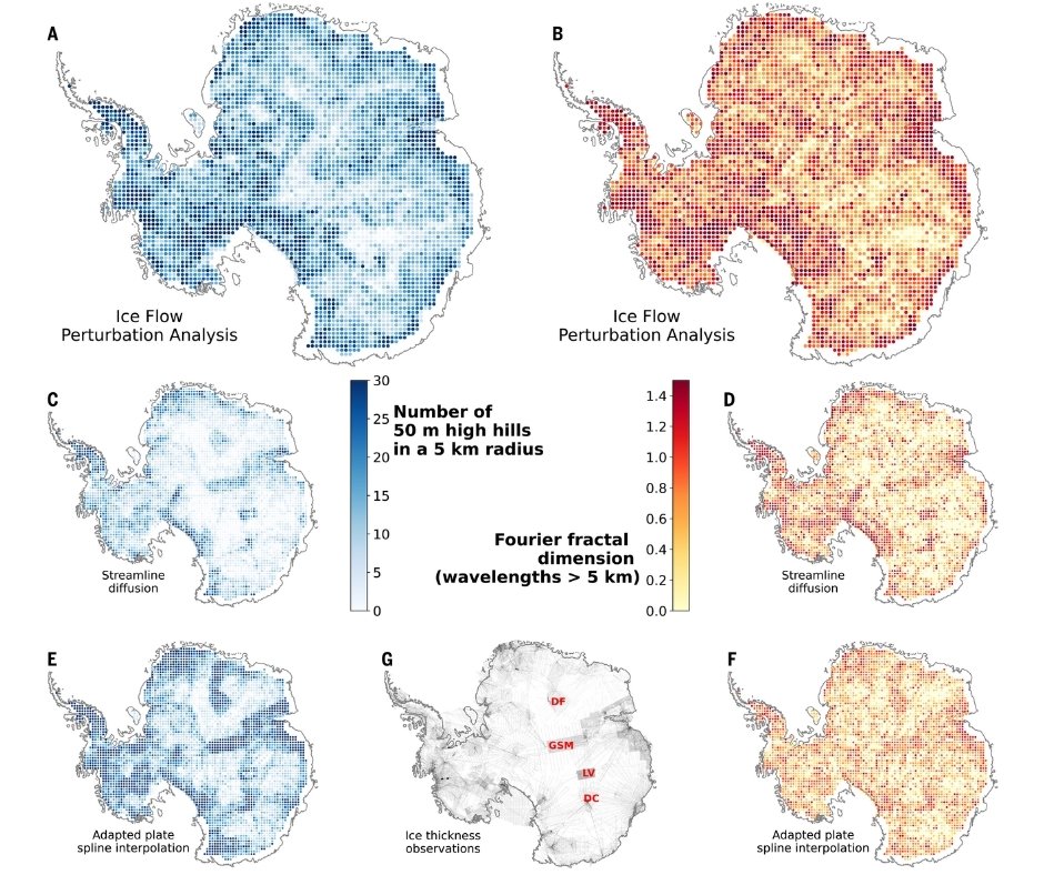 Fot. science.org/doi/10.1126Z punktu widzenia przyszłości kontynentu istotne jest to, jak ten ukryty teren może kierować przepływem lodu i wody. Głębokie kanały mogą działać jak autostrady dla lodowców zmierzających ku morzu, przyspieszając ich spływ. Z kolei skalne progi i wzgórza mogą pełnić funkcję naturalnych barier, które spowalniają cofanie się lodu.