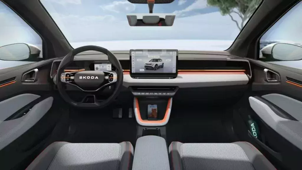 Wnętrze kabiny jest jak przystało na markę Volswagena, bardzo minimalistyczne. Nie brakuje w nim „zrównoważonych materiałów”, ekranu dotykowego, wyświetlacza dla kierowcy oraz panoramicznego dachu. Skoda jednak postarała się o epicką fantazyjną dwuramienną multifunkcyjną kierownicę oraz bezprzewodową ładowarkę do telefonu.