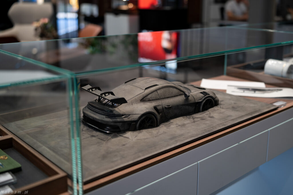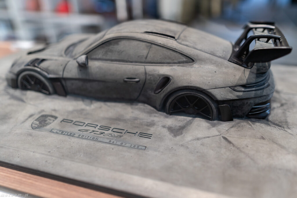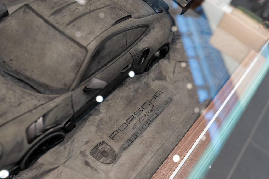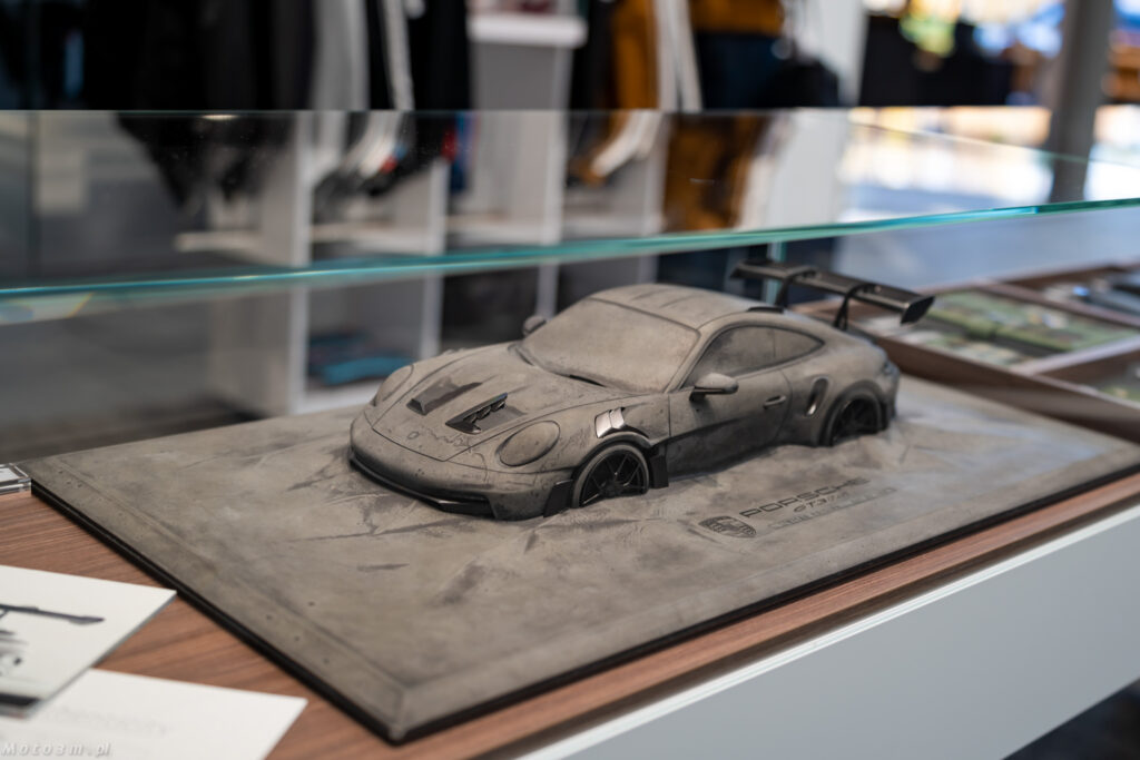 Ponadto, w strefie Lifestyle Porsche Centrum Sopot prezentowane są także inne modele czasomierzy z kolekcji Porsche Design oraz limitowana do 300 sztuk rzeźba przedstawiająca model GT3 RS (992) z pakietem Weissach. Wykonana jest manualnie, z betonu i metalowych elementów dekoracyjnych. Waży 14.5 kilograma. W zestawie jest szablon do wiercenia otworów umożliwiający montaż na ścianie oraz instrukcja instalacji. Całość dostarczana jest w wysokiej jakości drewnianym pudełku z certyfikatem autentyczności. Cena to ponad 28 000 zł, ale prezentowane w Porsche Centrum Sopot dzieło zostało już sprzedane. Stanowić będzie dekoracje domu jednego z klientów marki.