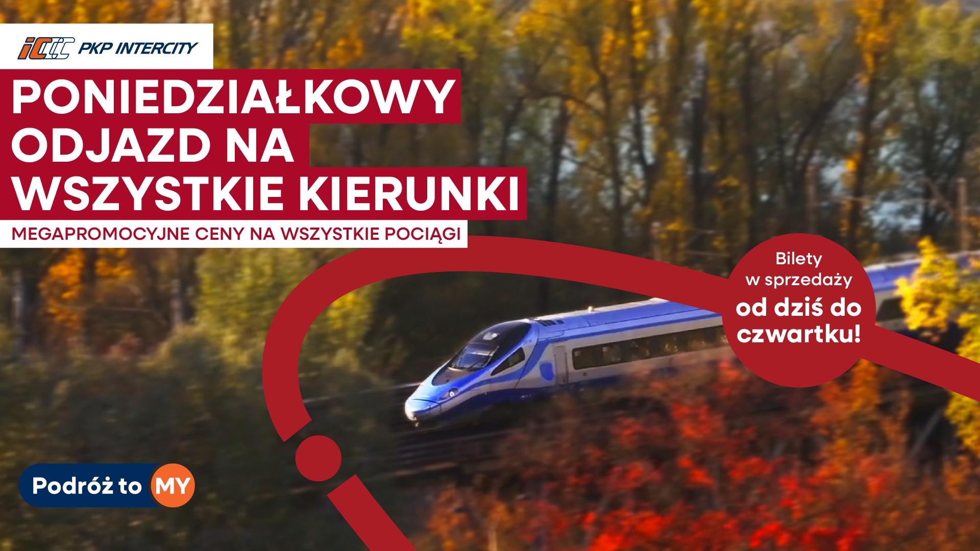 PKP Intercity wystartowało z jesienną megapromocją, trwającą od 10 listopada do 13 listopada. W tym przypadku naprawdę mamy do czynienia z solidną wyprzedażą, bowiem pasażerowie mogą kupić bilety na przejazdy w 2 klasie w niższej cenie we wszystkich pociągach PKP Intercity. Zero ograniczeń – poza klasową – bo oferta dotyczy każdej relacji i na podróż składami każdej kategorii.