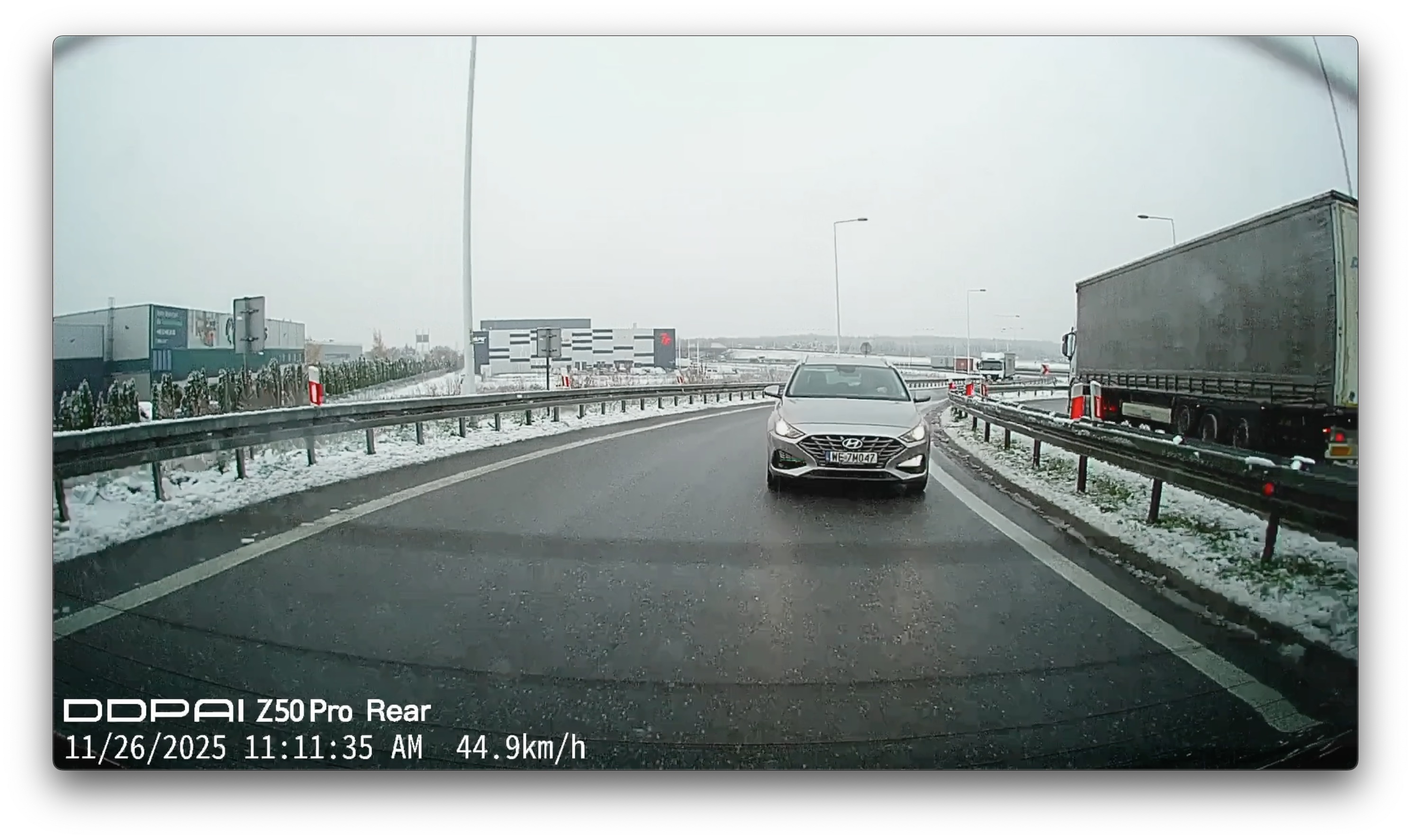 Całkiem dobrze radzi sobie też tylna kamera z zestawu, aczkolwiek trzeba pamiętać o tym, iż to „tylko” 1080p. Nie ma więc co liczyć, iż z wielkiej odległości sprawdzimy numery rejestracyjne czy to, kto siedział za kierownicą. Ale choćby przy nie-niebezpiecznych odległościach da się bez trudu odczytać numery: