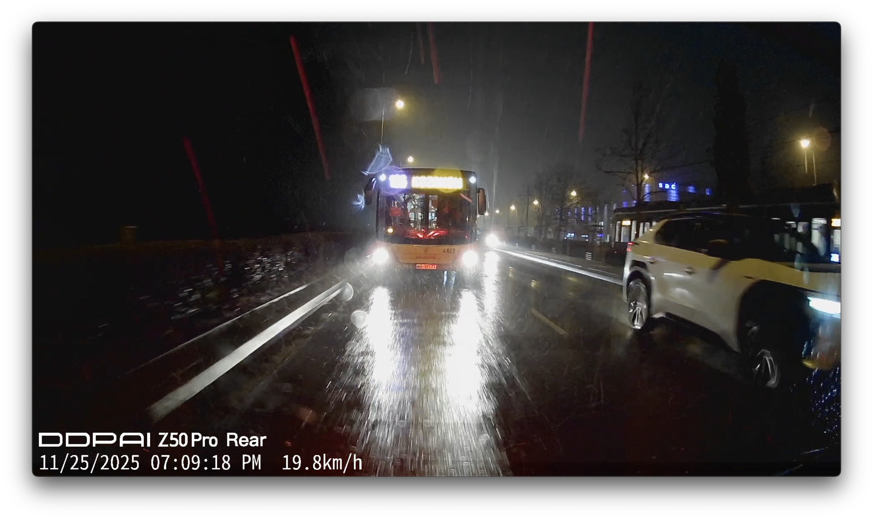 Więc w przypadku, kiedy ktoś podjedzie do nas faktycznie niebezpiecznie blisko, jego tablice rejestracyjne na pewno się zapiszą.A jak to wygląda w nocy?