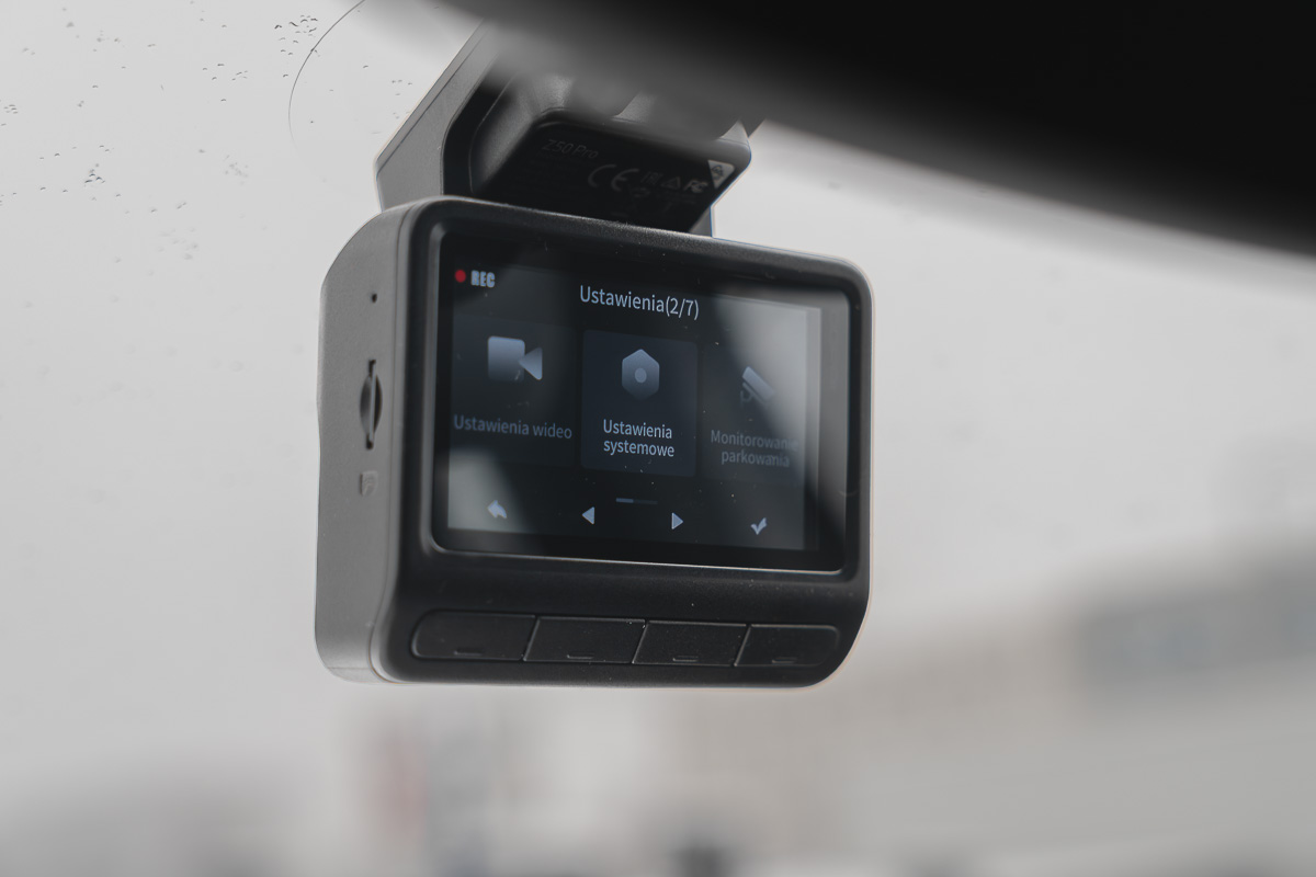 Dobra wiadomość jest tutaj też taka, iż DDPAI Z50 Pro obsługuje się bajecznie prosto. Cztery przyciski fizyczne są logicznie i spójnie przypisane do poszczególnych zakładek czy kontrolerów menu. I tak jak zwykle ze zmianą ustawień czekam na sięgnięcie po telefon i aplikację towarzyszącą, tak tutaj wszystkie zmiany z chęcią wprowadzałem z poziomu kamery, telefon trzymając w kieszeni.