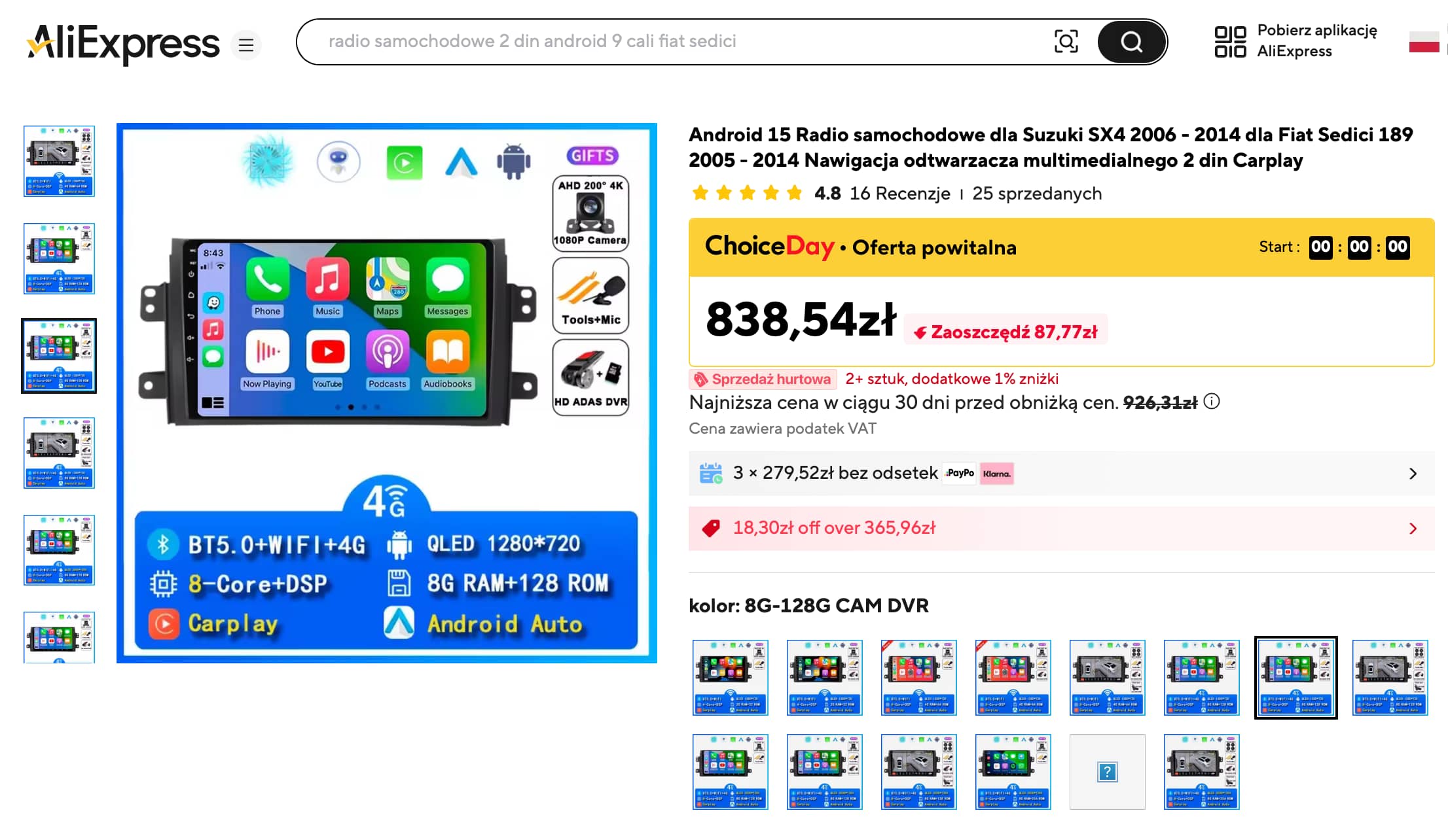 Testowana stacja nie ma konkretnej nazwy, ale tego typu urządzenia można znaleźć np. w serwisie Aliexpress wpisując „Suzuki SX4 2 DIN Apple CarPlay”.