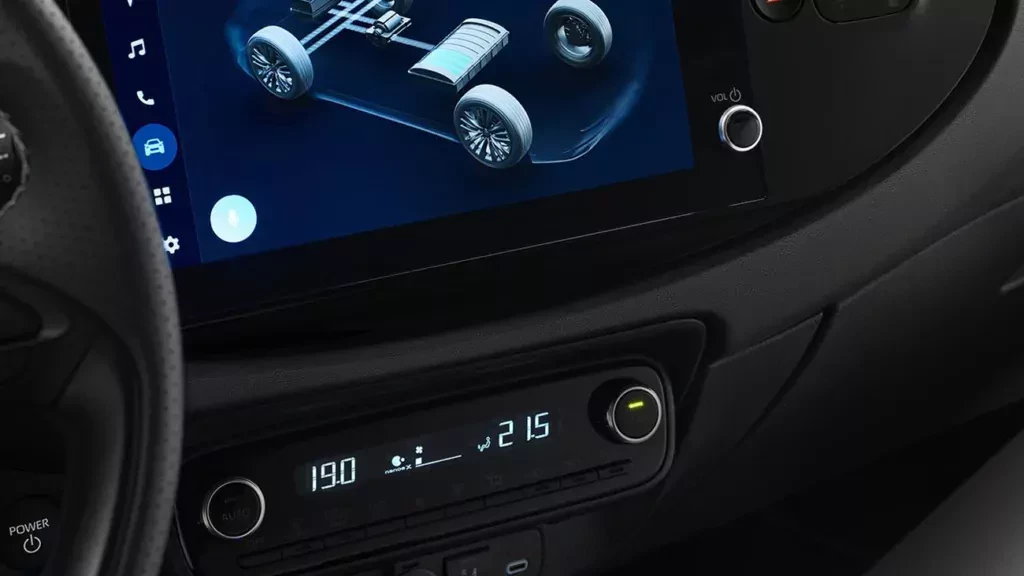 Toyota w kabinie Aygo X oprócz wysmakowanych akcentów kolorystycznych uwzględniła cyfrowy wyświetlacz o przekątnej 7″ oraz 10,5″ ekran dotykowy systemu multimedialnego. Nowoczesne wyposażenie uwzględnia także dwa porty USB-C i możliwość bezprzewodowego ładowania urządzeń. Otwieranie, zamykanie i uruchamianie będzie możliwe dzięki cyfrowemu kluczykowi. Producent zapowiedział, iż będzie można go udostępnić choćby czterem dodatkowym użytkownikom.