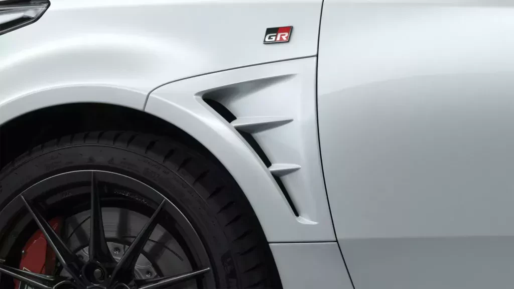 Wentylowana maska nawiązuje kształtem do karbonowej maski z najbardziej hardcorowego GRMN Yarisa, jednak w tym przypadku wykonana jest z aluminiom. Inżynierowie połączyli ją ze splitterem, który redukuje unoszenie przodu oraz wlotami powietrza w przednim błotniku. Te poprawiają prowadzenie i czucie kierownicy podczas „nurkowania” przodem. Pakiet zawiera także płaską pokrywę zbiornika paliwa. Optymalizuje ona przepływ powietrza pod pojazdem. Nie zabrakło również dodatkowych wlotów powietrza z tyłu, czy regulowanego tylnego spojlera. Poprawia on stabilność przy dużych prędkościach i podczas gwałtownego hamowania.