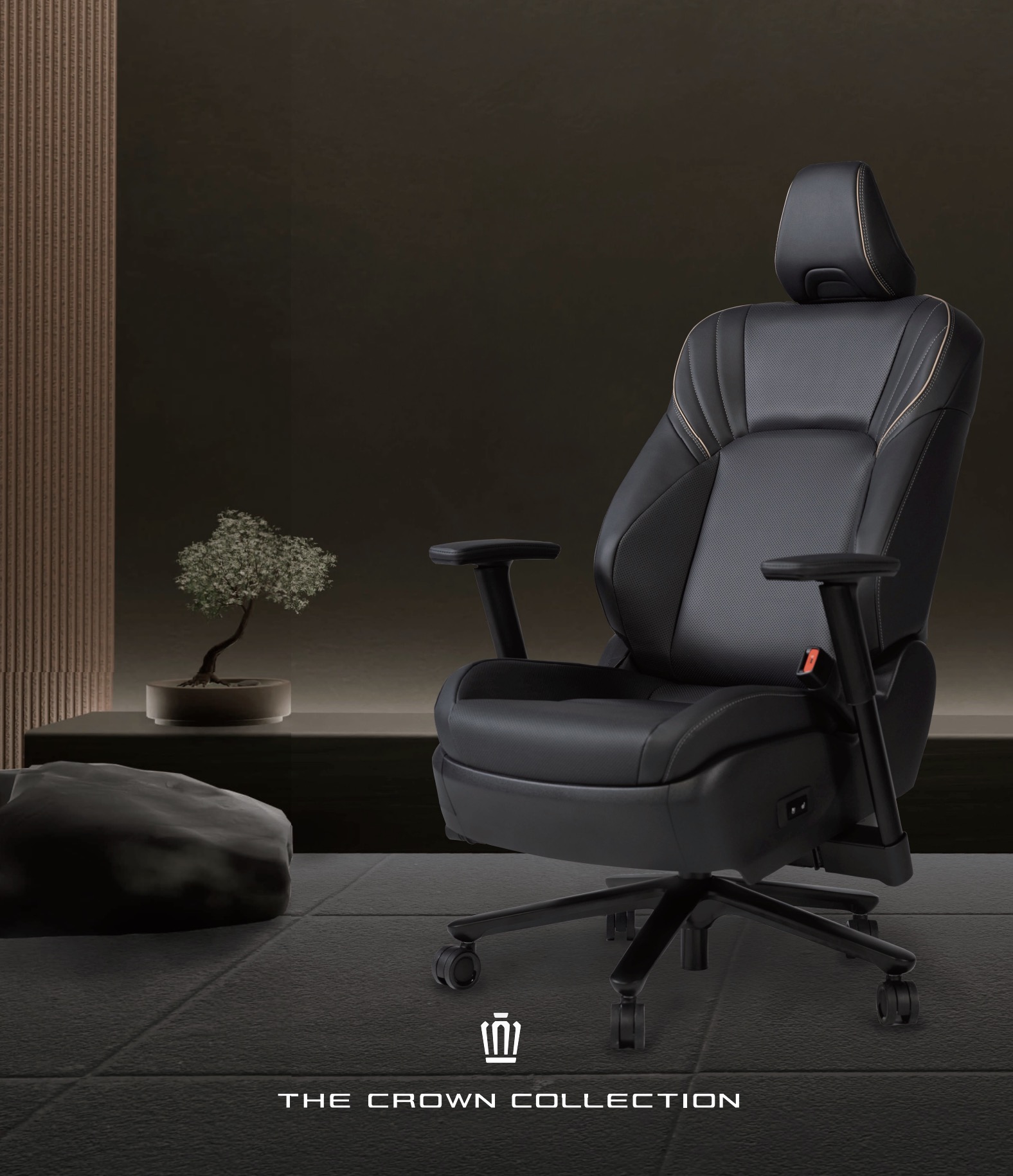 Chodzi o model Crown Seat Desk Chair, bazujący na jednym z najwygodniejszych foteli stworzonych przez Toyotę, który pierwotnie wykorzystano w modelu Toyota Crown. Fotel biurowy został oczywiście dostosowany do realiów pozasamochodowych. Dodano do niego pięcioramienną podstawę z obrotowymi kółkami, podnośnik gazowy oraz regulowane podłokietniki o szerokim zakresie ustawień.