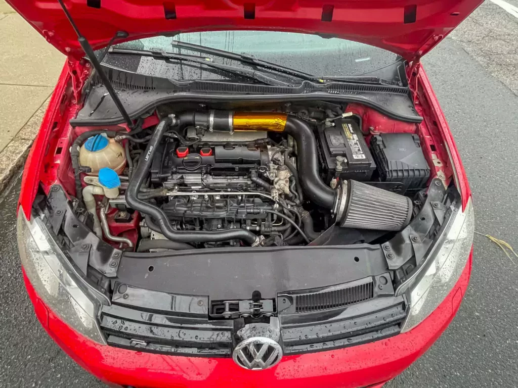 Pod maską tego konkretnego egzemplarza pracuje rzędowy, 4-cylindrowy silnik o pojemności 2 litrów. W wersji fabrycznej jednostka generowała 260 koni mechanicznych. Jednakże, ten konkretny Golf R ma dość sporo modyfikacji, jednak sprzedający nie dostarcza wykresu z hamowni. Jego moc może być zatem odrobinę większa. Wśród najbardziej istotnych modyfikacji możemy wymienić nowy sterownik silnika Stage 2+. Ale także układ dolotu, czy nowy wydech i zestaw hamulców Brembo Big Brake. W środku znajdziemy z kolei kierownicę obszytą alcantarą, co jest miłym dodatkiem.