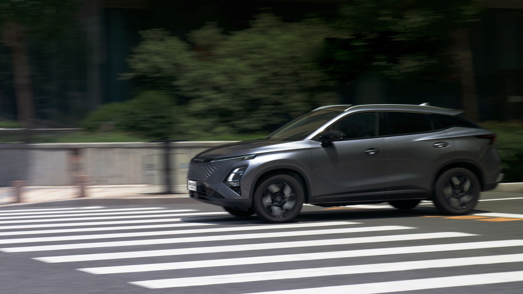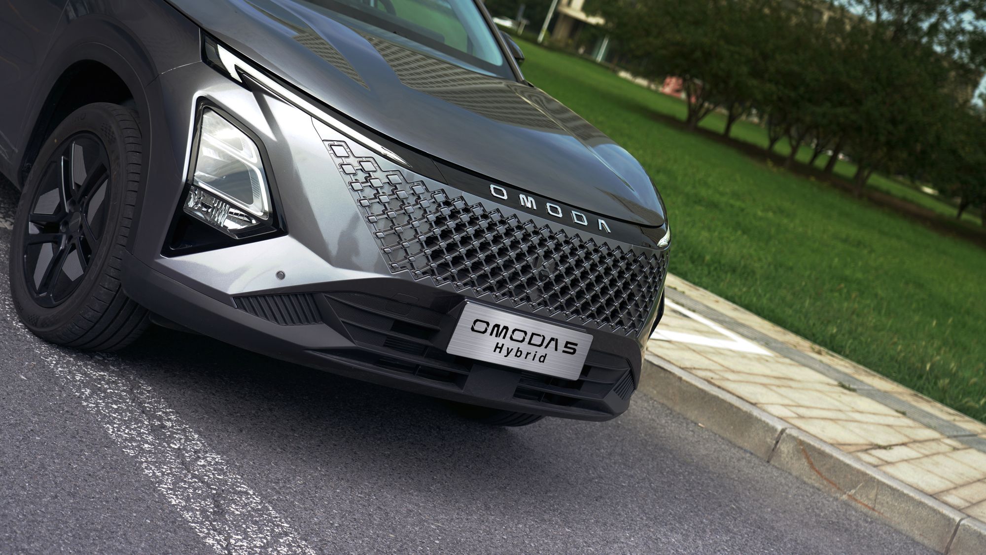 OMODA 5 Hybrid to pierwszy model, w którym możemy zobaczyć zmodernizowany pas przedni. Projektanci postawili na bardziej futurystyczny i agresywny wygląd. Zmienił się charakterystyczny, trójwymiarowy grill, który teraz jest chyba jeszcze bardziej wyrazisty. Przeprojektowano również kształt świateł do jazdy dziennej, które zyskały minimalistyczną, ale zadziorną linię i zostały połączone czarną listwą z logo marki. Dynamiczne przetłoczenia i smukła sylwetka, znane z dotychczasowego modelu, pozostały bez zmian.