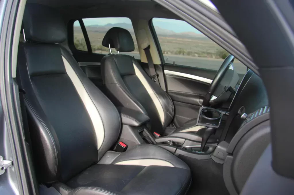 Ponadto, Saab ma również interesujące wyposażenie fabryczne. Znajdziemy tutaj już podgrzewane przednie fotele, spryskiwacze reflektorów, czy też 17-calowe felgi aluminiowe. Mamy także elektrycznie otwierany szyberdach oraz skórzaną tapicerkę. W kabinie możemy korzystać również z dwustrefowej automatycznej klimatyzacji i systemu nagłośnienia Bose.