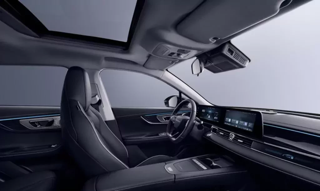 Nowoczesne wnętrze uwzględnia podwójny, zakrzywiony ekran o przekątnej 12,3 cala, który integruje system informacyjno-rozrywkowy i zestaw wskaźników. Wielofunkcyjna kierownica i tunel środkowy skupiają najważniejsze elementy sterujące. Bagażnik SUV-a może osiągnąć od 372 do 1079 litrów pojemności. Dodatkowo Omoda 5 Super Hybrid w standardzie uwzględnia 20 systemów ADAS (Advanced Vehicle Assisted Driving). W standardzie wyposażenia SUV-a znajdują się także takie elementy jak: