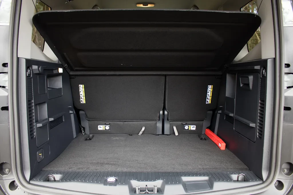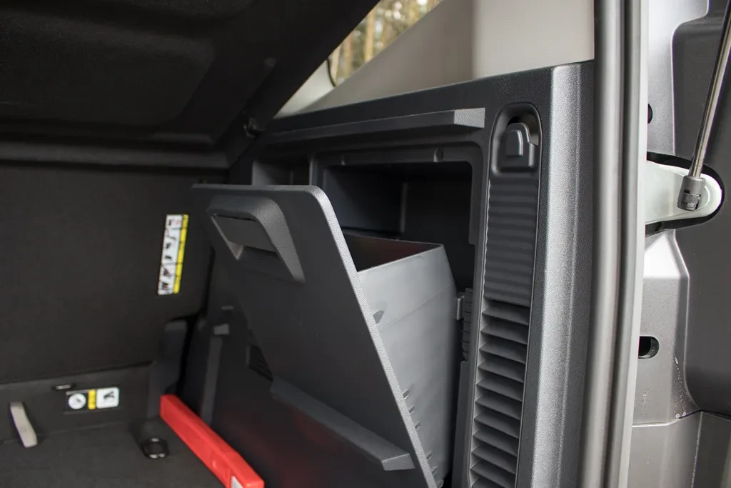 Na tym jednak nie koniec. Mamy niski próg załadunkowy, foremne kształty, zaczepy do mocowania bagażu, praktyczne wnęki, a choćby wyjmowaną przegrodę, w której można przewozić np. brudne rzeczy i później ją po prostu wypłukać. Do tego tylne fotele można ustawić w pionie — wtedy przestrzeń ładunkowa zaczyna przypominać tę z małego auta dostawczego.